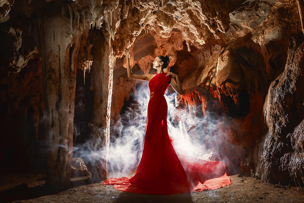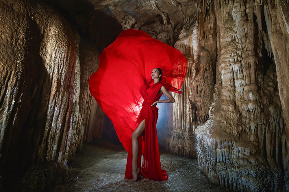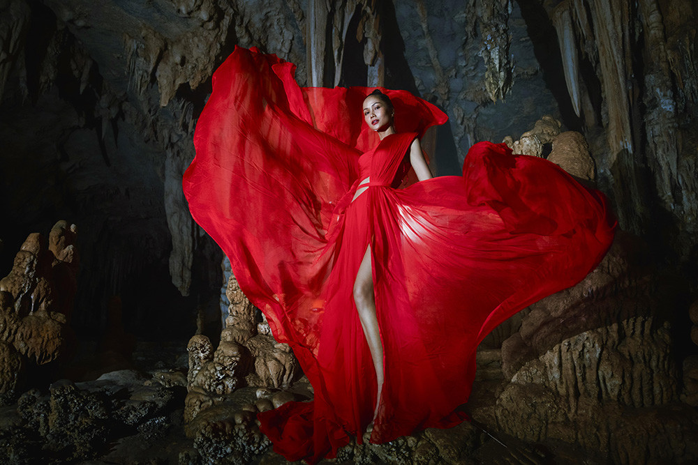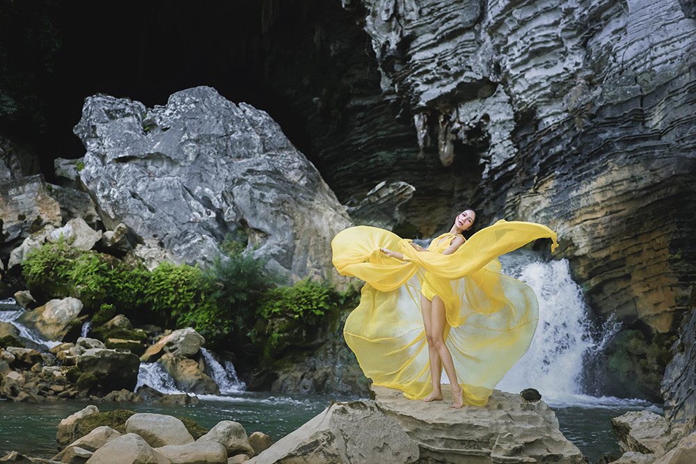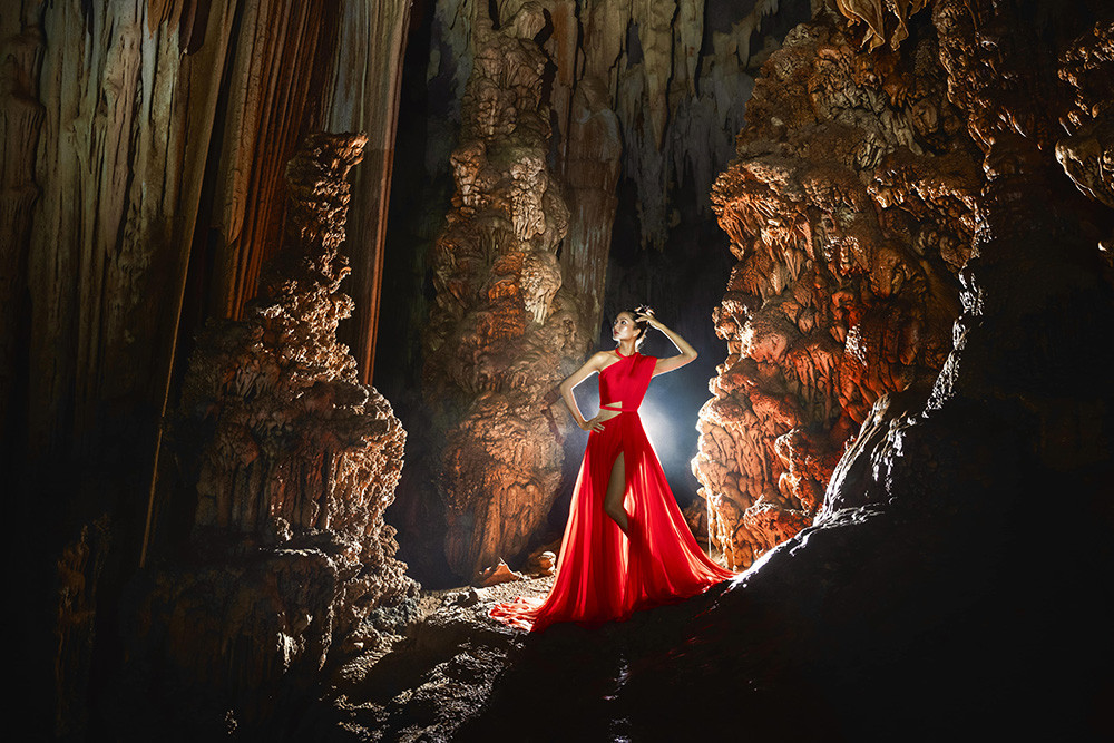 Hoa hậu H'Hen Niê thực hiện bộ ảnh thời trang trong chuyến đi quảng bá du lịch và khám phá hệ thống hang động Tú Làn (tỉnh Quảng Bình).