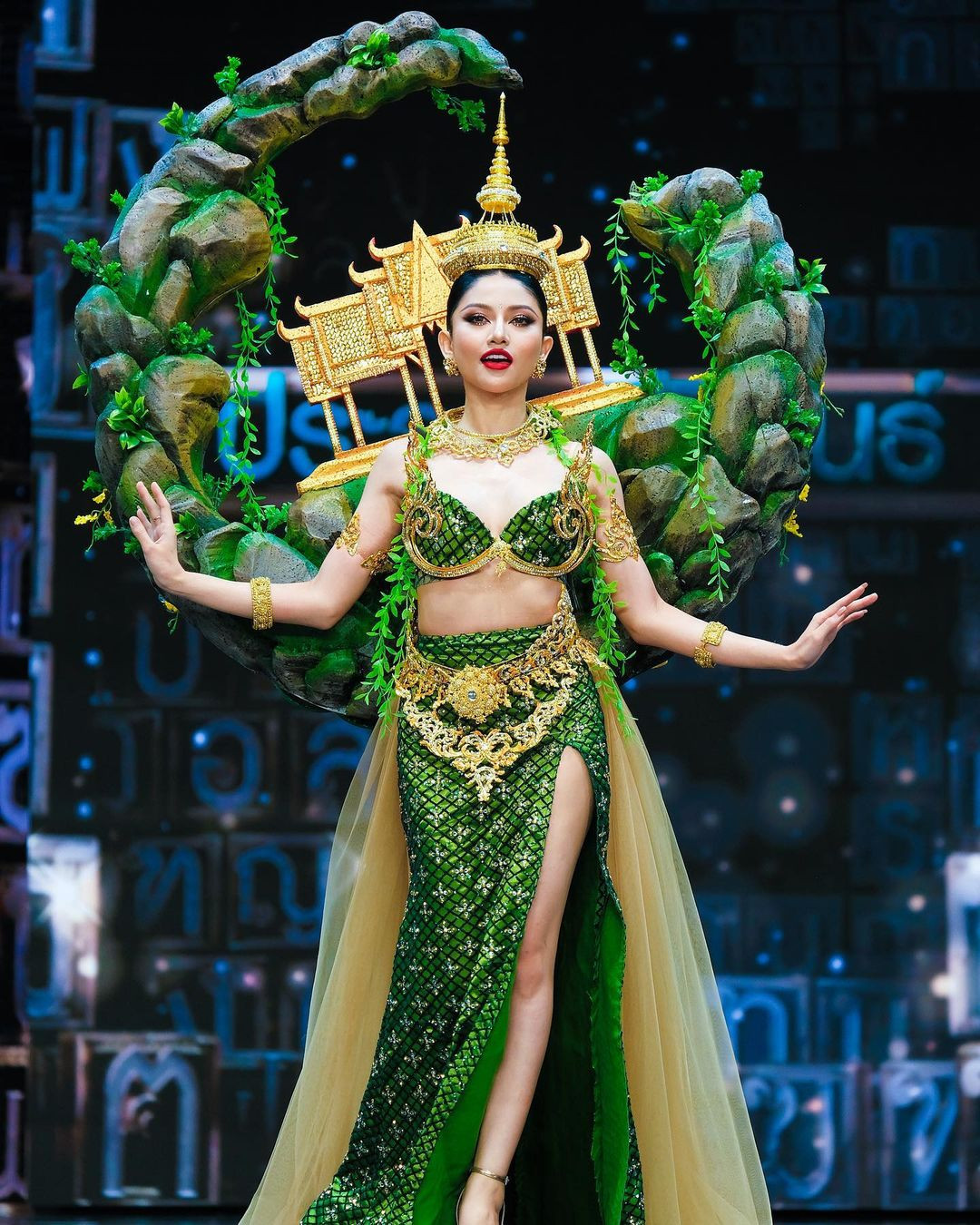 Một số thí sinh mang đến trang phục cầu kỳ, hoành tráng giới thiệu về nét văn hóa đa dạng của xứ sở chùa vàng.