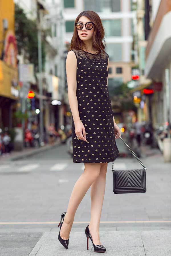 Jolie Nguyễn thể hiện sự thanh tao, nhẹ nhàng của quý cô thành thị với thiết kế tông đen nữ tính hay phom váy chữ A truyền thống kết hợp hoạ tiết ánh kim  |