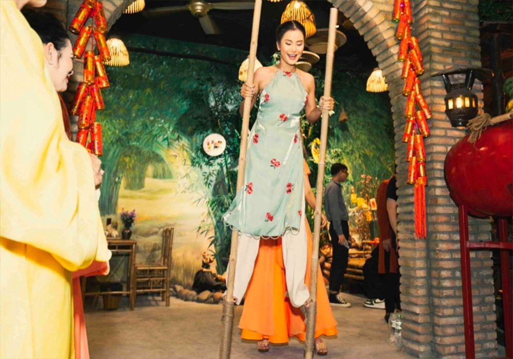 Hương Ly thử sức đi cà kheo. Người đẹp ban đầu run vì lo lắng và sau đó thích thú vì đi được những bước đầu tiên. Kim Duyên đến muộn do bận việc riêng.Dàn người đẹp gói bánh chưng với sự hướng dẫn của nghệ nhân. Các nguyên vật liệu được Vũ Thu Phương mua từ ngoài Bắc và vận chuyển vào Sài Gòn. Dàn người mẫu, nam vương lịch lãm cùng chị em trẩy hội xuân. Các liền anh, liền chị hát đối quan họ nhận nhiều sự tán thưởng. Quan họ được UNESCO công nhận là di sản văn hóa phi vật thể của nhân loại vào năm 2009.Nghệ nhân nặn tò he phục vụ khách. Đây là đồ chơi dân gian của người Việt, được nặn từ bột gạo có trộn nếp với những tạo hình nhiều màu sắc. Nhiều trò chơi dân gian được tái hiện sinh động như nhảy sạp, đập niêu,… thu hút người đi đường. Các Nam vương tham gia trò đấu vật tranh giải. “Tết với mọi người là niềm tin, hy vọng, tương lai mới, khởi đầu mới. Đây là dịp cho các anh, chị, em, bạn bè, người thân đoàn tụ với nhau, ôn lại chuyện cũ, hướng đến những câu chuyện mới và kết nối, gắn kết, chia sẻ cùng nhau”, Vũ Thu Phương chia sẻ.
