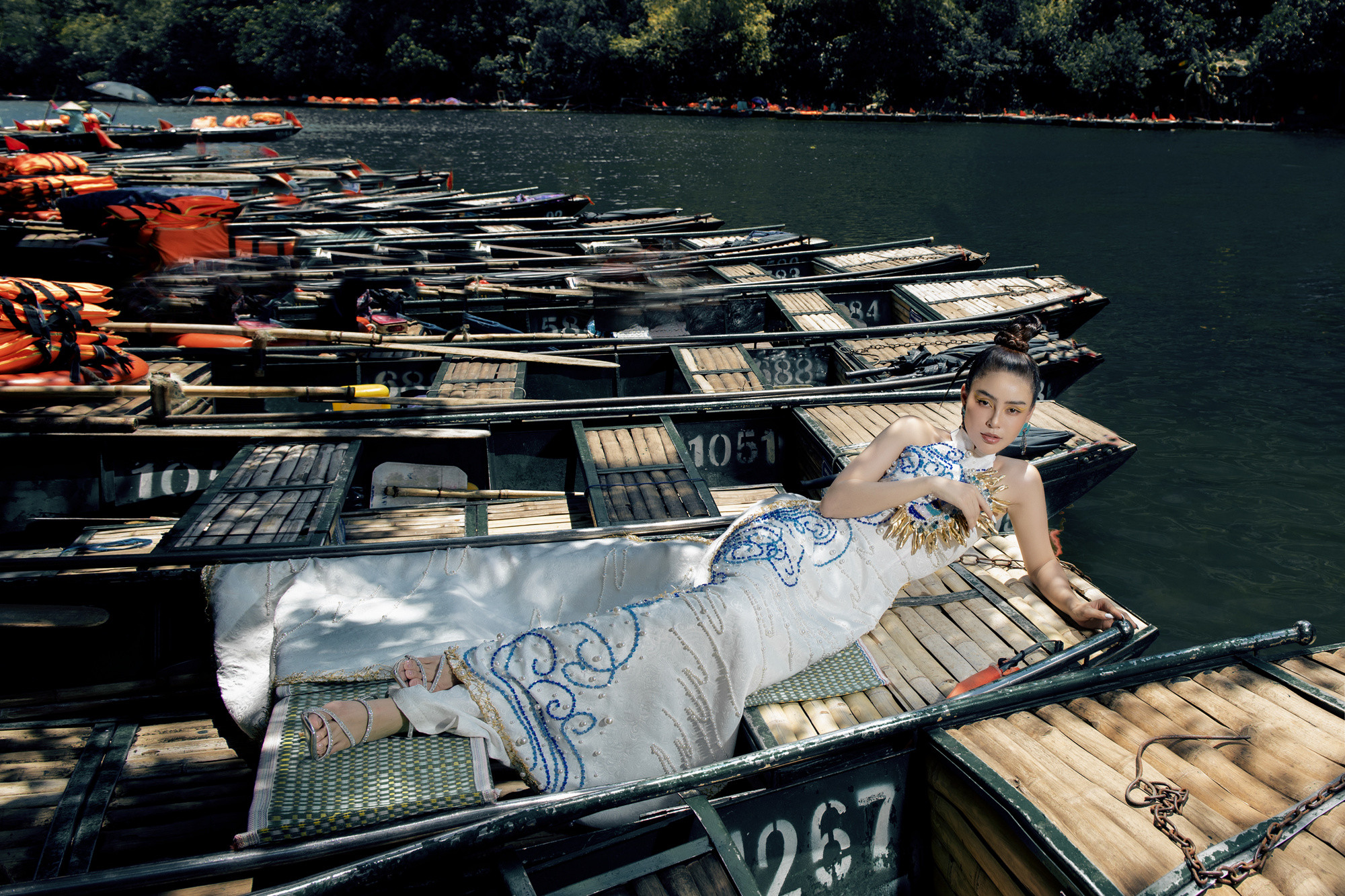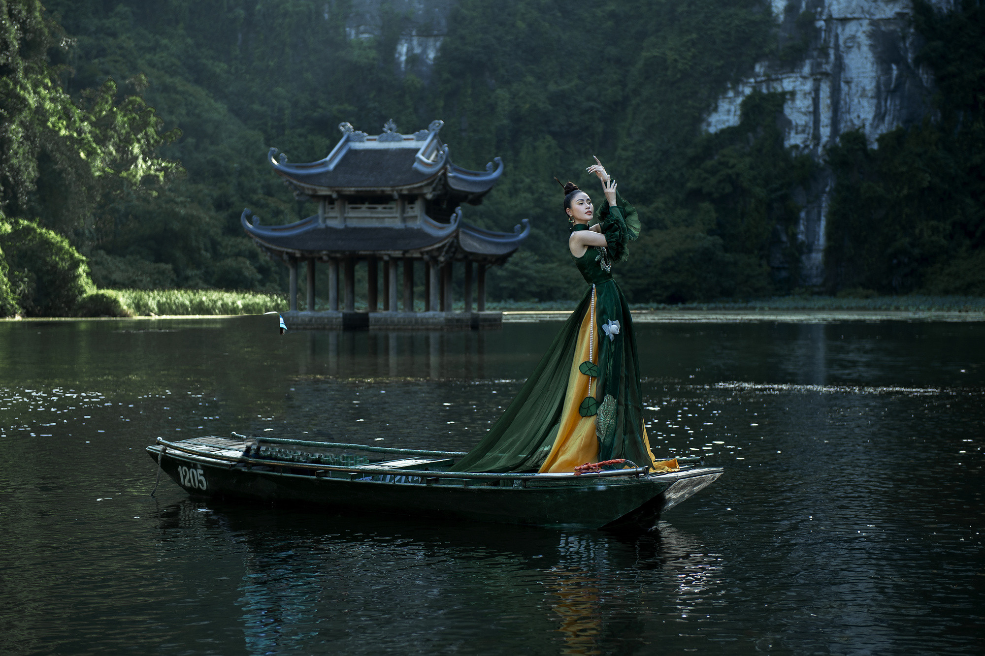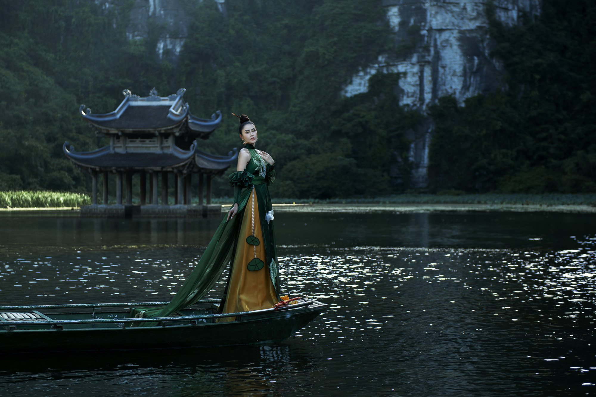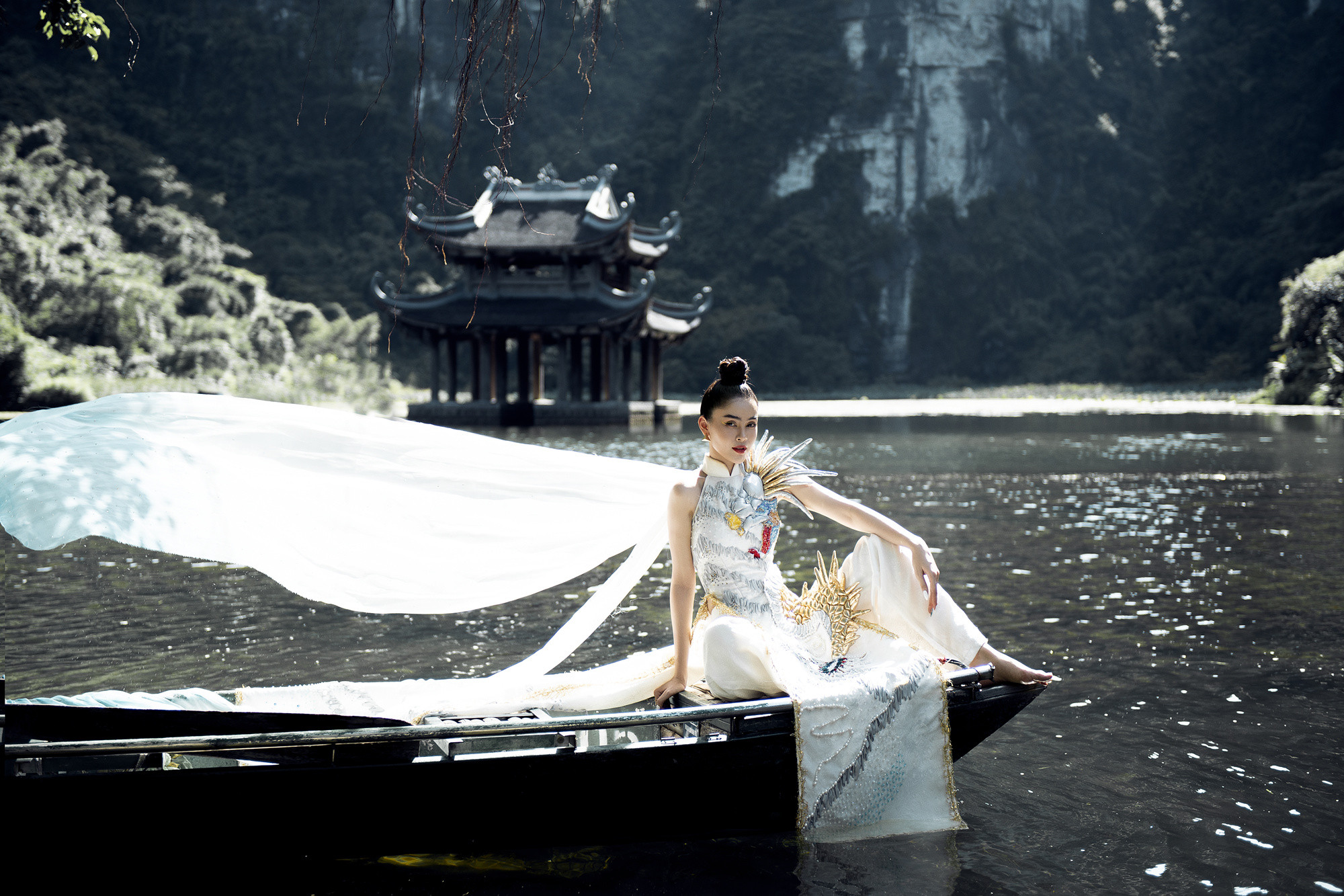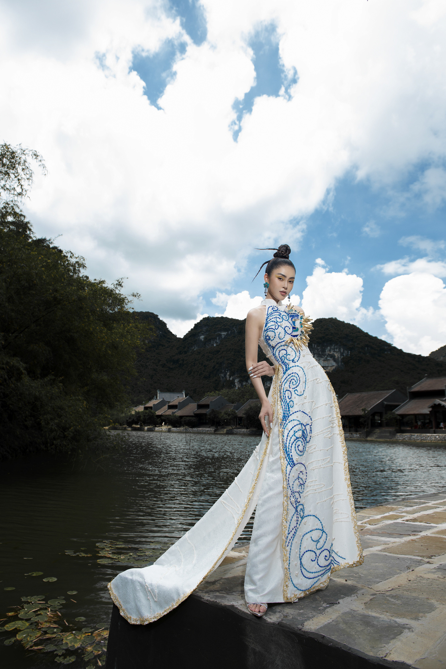 Hoa hậu Du lịch Việt Nam toàn cầu 2022 Lý Kim Thảo thả dáng với chiếc áo dài cách tân trong cảnh sắc tuyệt đẹp ở Ninh Bình.