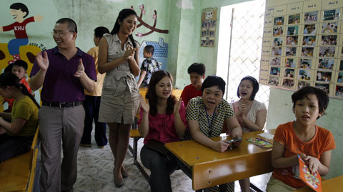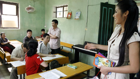 Ngọc Hân còn lên bục giảng dậy các em nhỏ đọc thơ trong một giờ học ở Làng Hoa Bình.