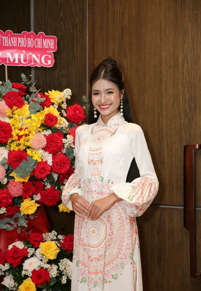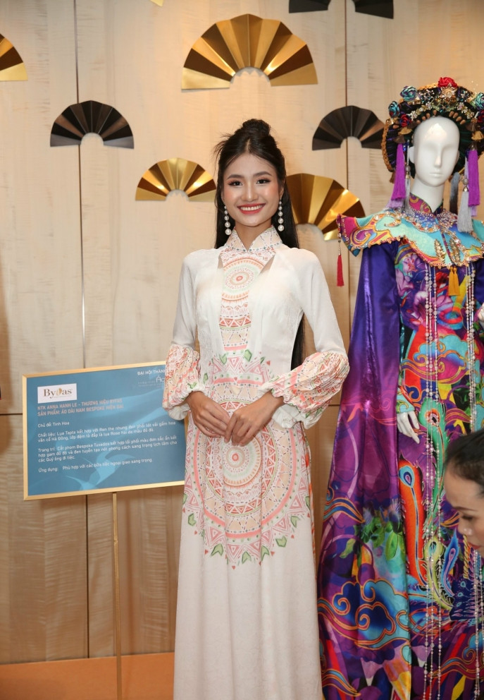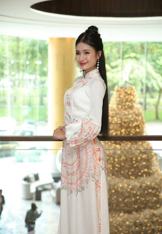 “Trong những năm gần đây, vấn đề định hướng phát triển áo dài trong đời sống đương đại rất được xã hội quan tâm, hướng tới việc đưa áo dài trở thành quốc phục của Việt Nam. Đặc biệt trong bối cảnh toàn cầu hoá và hội nhập sâu rộng thì việc gìn giữ phát huy giá trị di sản áo dài là việc làm cần thiết và ý nghĩa”, người đẹp sinh năm 2004 bày tỏ.