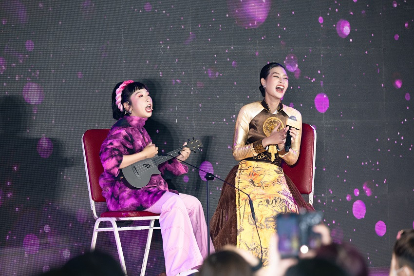 Đặc biệt, “Ba lùi" Nguyên Thảo xuất hiện bất ngờ và hôn má Thiên Ân khiến khán giả hò reo thích thú. Nguyên Thảo cũng chia sẻ về những kỷ niệm khi cùng tham gia Hoa hậu Hòa bình Việt 2022. Đặc biệt, cả hai còn gây thích thú tại thử thách hô tên với các loại trái cây cùng người hâm mộ.