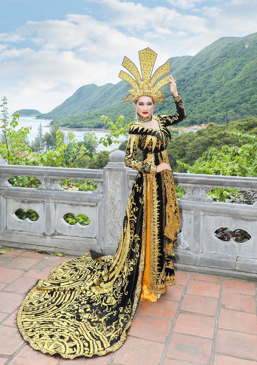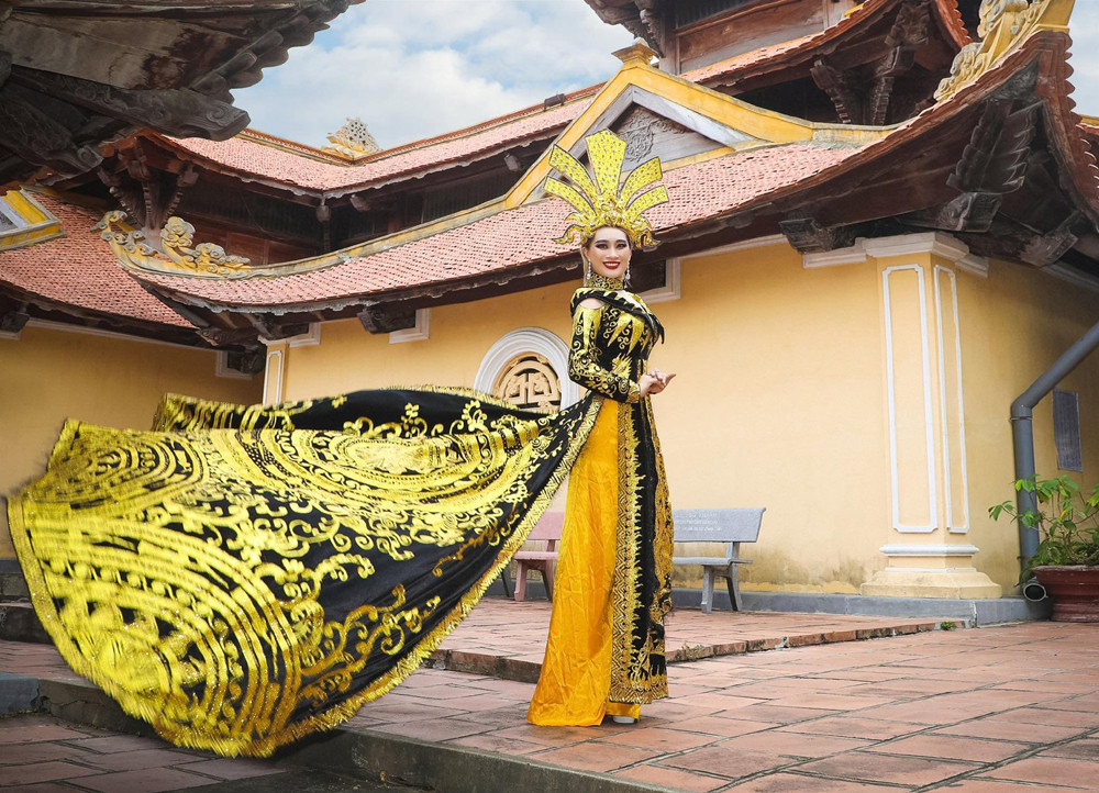 Vu Lan năm nay Trịnh Lan Trinh tranh thủ chụp một số bộ ảnh trang phục áo dài và áo bà ba để ghi lại kỉ niệm chuyến đi.