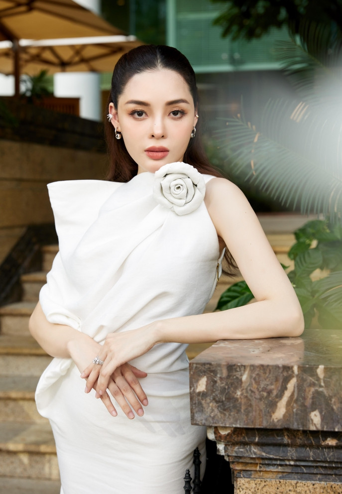 Trần Phương Hà cao 1,7m với số đo 86-62-96cm. Lợi thế vóc dáng cùng làn da trắng giúp nàng hậu xinh đẹp trong các thiết kế nữ tính sang trọng.