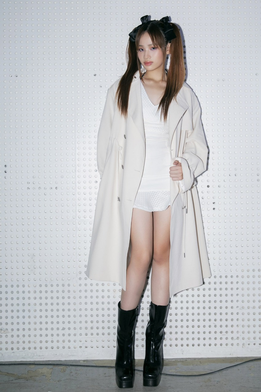 Sau đó, Bảo Hà xuất hiện với váy trắng liền thân cùng áo khoác dài tông be. Váy bó sát kết hợp áo măng tô là một trong những xu hướng thời trang hàng đầu của Hàn Quốc mùa thu đông. Hình ảnh cô gái ấm áp, dịu dàng nhưng đầy cá tính, mạnh mẽ là những gì Bảo Hà thể hiện khi sải bước trên sàn diễn.