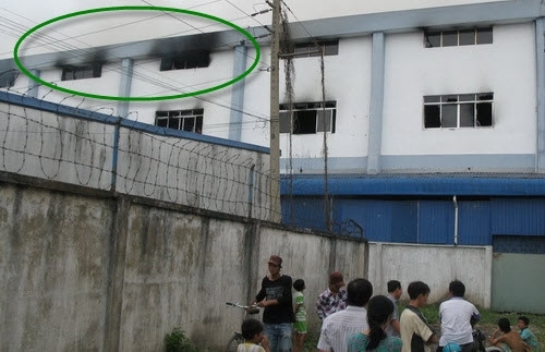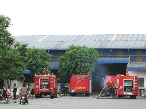 Trong khi đó, từ các ô cửa sổ, lửa phụt ra lan sang công ty sản xuất linh kiện xe máy kế cận. Rất may lực lượng tại chỗ đã dập tắt kịp.