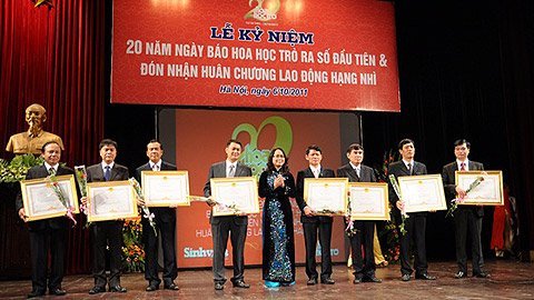 | Các thế hệ Ban Biên tập báo đại diện cho tòa soạn đón nhận Huân chương Lao động hạng Nhì. |