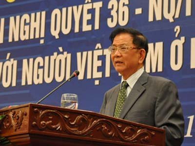 Nguyên Bộ trưởng Nguyễn Dy Niên tại hội nghị tổng kết thực hiện Nghị quyết 36 của Bộ Chính trị về công tác đối với người Việt Nam ở nước ngoài năm 2010. Ảnh: Phương Thuận |