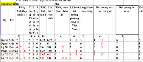 Ngoài Hoàng Thùy Linh, Thùy Dung với những "scadal" điểm số nay đã nguôi ngoai, nay có Khánh Chi với nhiều điểm "í ẹ" 1, 3, 4; hoa hậu thế giới người Việt năm 2010 Diễm Hương cũng trượt tới 7 môn, 11 môn xếp hạng D và C, số điểm trung bình tích lũy được chỉ ở khoảng 1.7 (cách tính điểm của học chế tín chỉ đang được áp dụng rộng rãi tại nhiều trường ĐH hiện nay - có điểm tuyệt đối là 4.0 và các hạng A, B, C, D, E).