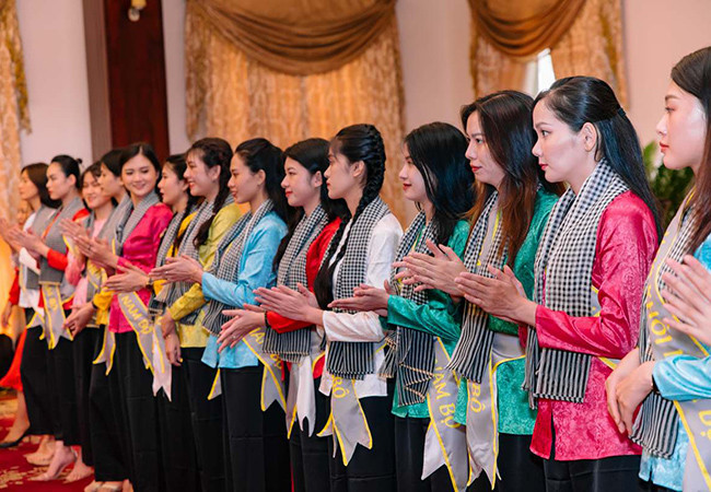 Các thí sinh khoe sắc trong áo bà ba, khăn rằn và áo dài.