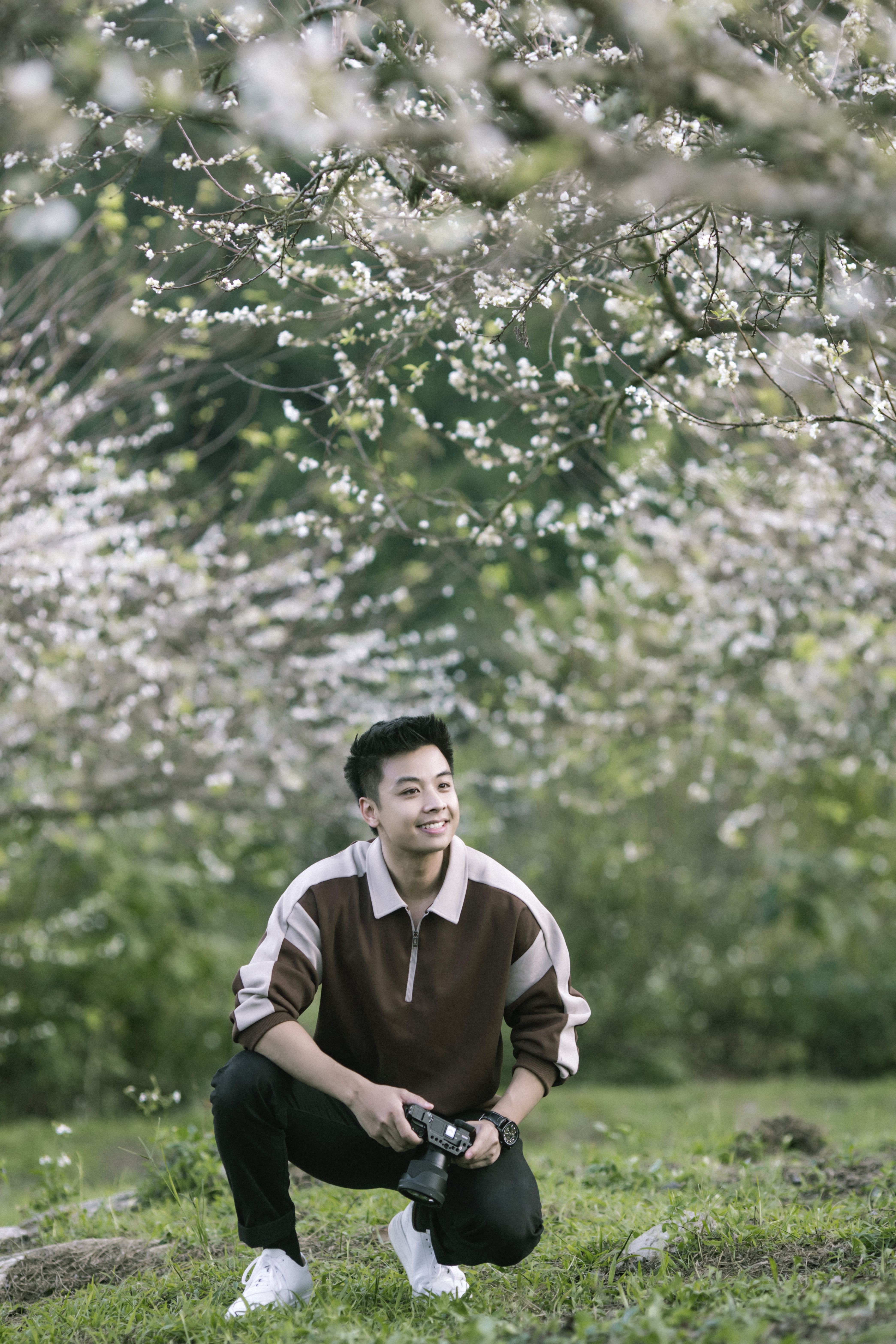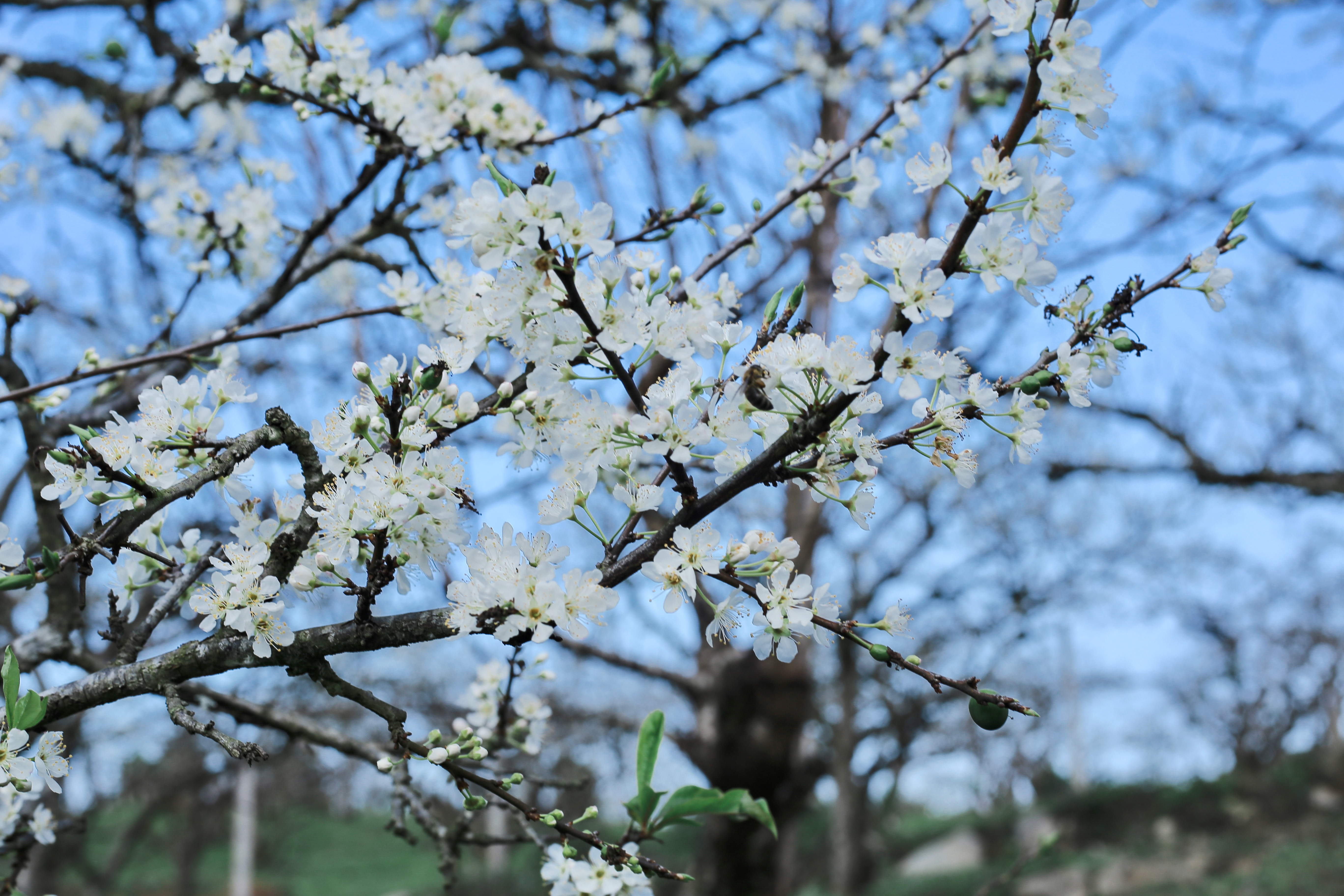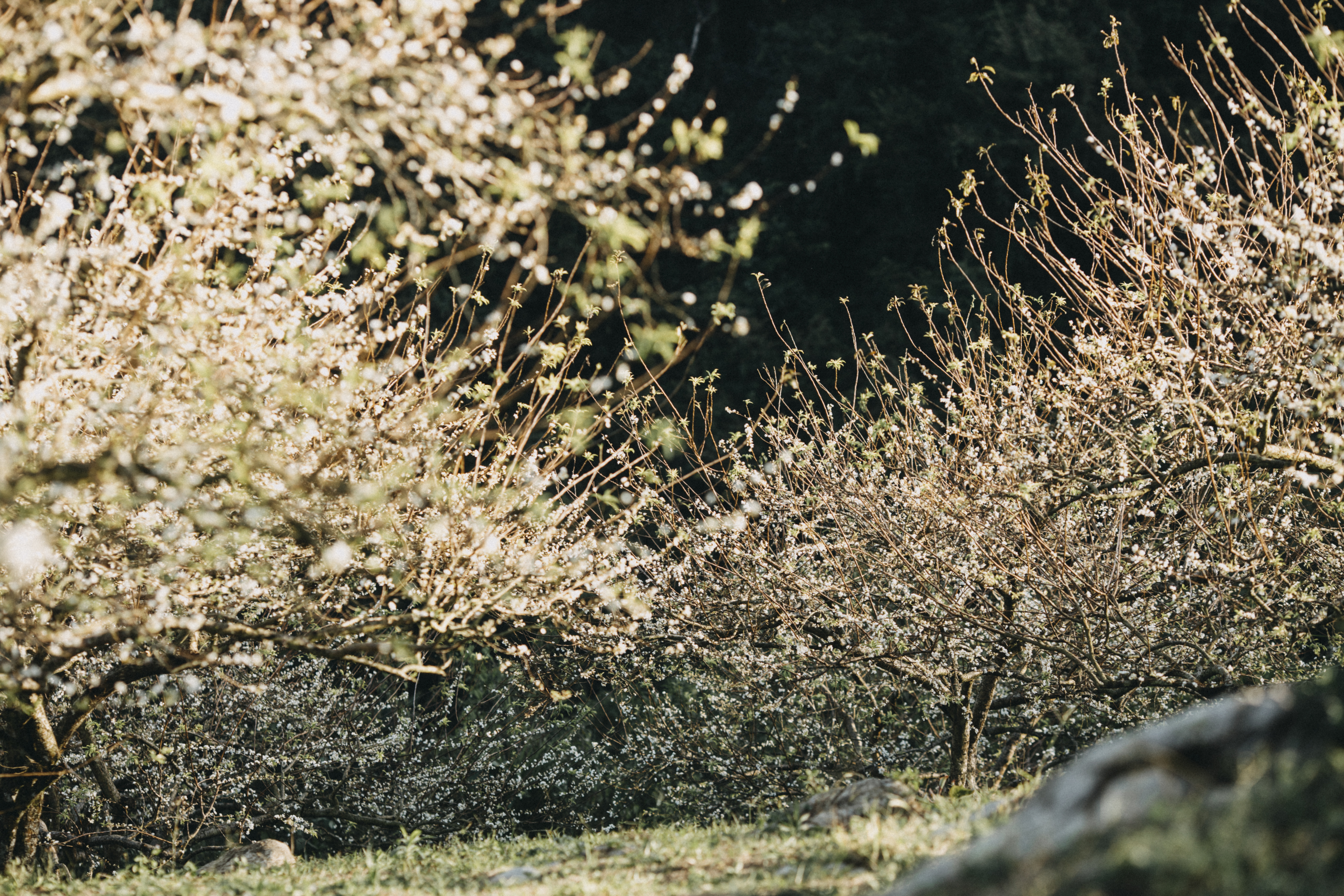 Những ngày đầu tháng 11, du khách tới Mộc Châu (Sơn La) sẽ không khỏi ngỡ ngàng trước hình ảnh nhiều vườn mận nở hoa trắng xóa, đẹp nên thơ. Mặc dù là hoa trái mùa nhưng năm nay, hoa mận ở khu vực gần thung lũng Nà Ka nở đồng loạt, dày và đẹpTại Mộc Châu có nhiều vùng trồng mận nổi tiếng như thung lũng mận Mu Náu, bản Pa Phách, thung lũng Nà Ka, thung lũng Thung Cuông và các tiểu khu 84, 86, Cờ Đỏ (vựa mận Mộc Châu)... Hoa mận chính mùa thường bắt đầu nở vào giữa tháng 1 đến hết tháng 2 hàng nămCách đó khoảng 2-3 tháng, có một vụ hoa trái mùa mà nhiều du khách chưa biết tới. Theo Quang Kiên - chàng trai nổi tiếng với nhiều bộ ảnh về du lịch Mộc Châu: Năm nay, hoa mận trái mùa nở rất nhiều, đồng loạt và đẹp không kém mùa hoa chínhTheo Kiên, khu vực có hoa mận nở đẹp nhất hiện giờ là tại các nhà vườn nằm trên đường vào xã Tân Lập, gần thung lũng mận Nà Ka. Phí vào vườn là 30.000 đồng/du khách"Hoa trái mùa sẽ nhỏ hơn một chút và nhanh tàn hơn hoa chính vụ. Du khách nên tranh thủ tới Mộc Châu trong 2 tuần nữa để chiêm ngưỡng hoa mận trái mùa", Quang Kiên cho biết. Khi tìm tới vùng trồng mận, du khách có thể hỏi thăm người dân địa phương để biết khu vườn nào đang nở rộ nhấtThời điểm lý tưởng để chụp ảnh với vườn hoa mận là 7-10h sáng hoặc 15-17h chiều. Thời điểm này nắng không quá gay gắt. 7h sáng, bạn có thể ngắm sương đọng trên cành lá, khi về chiều có thể thấy ánh nắng hoàng hôn