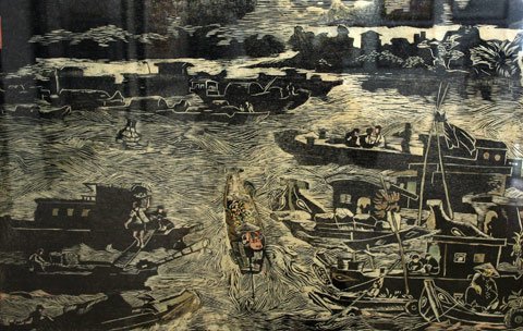 Cảnh trên sông Sài Gòn, in độc bản - khắc gỗ, Việt Kim Quyền