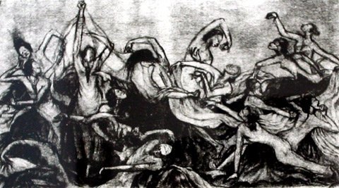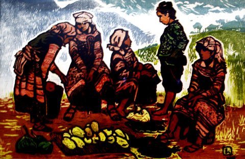 Chợ thổ cẩm, in kẽm đen trắng, Hoàng Nhi