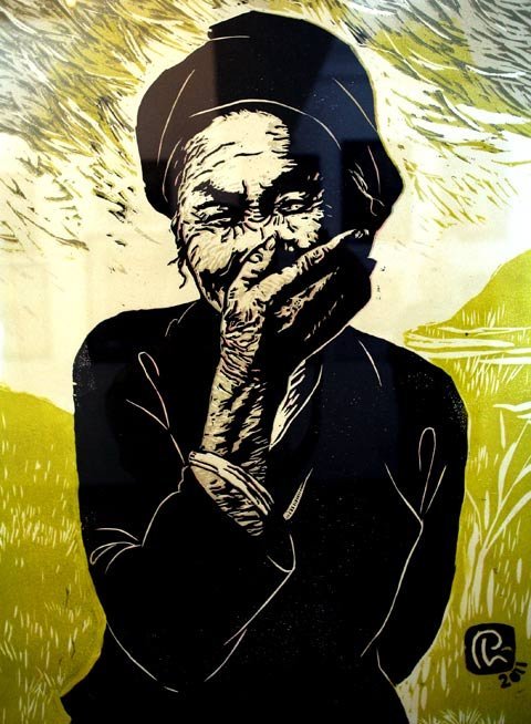 Trao đổi, khắc gỗ, Lê Thị Hiền