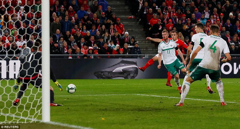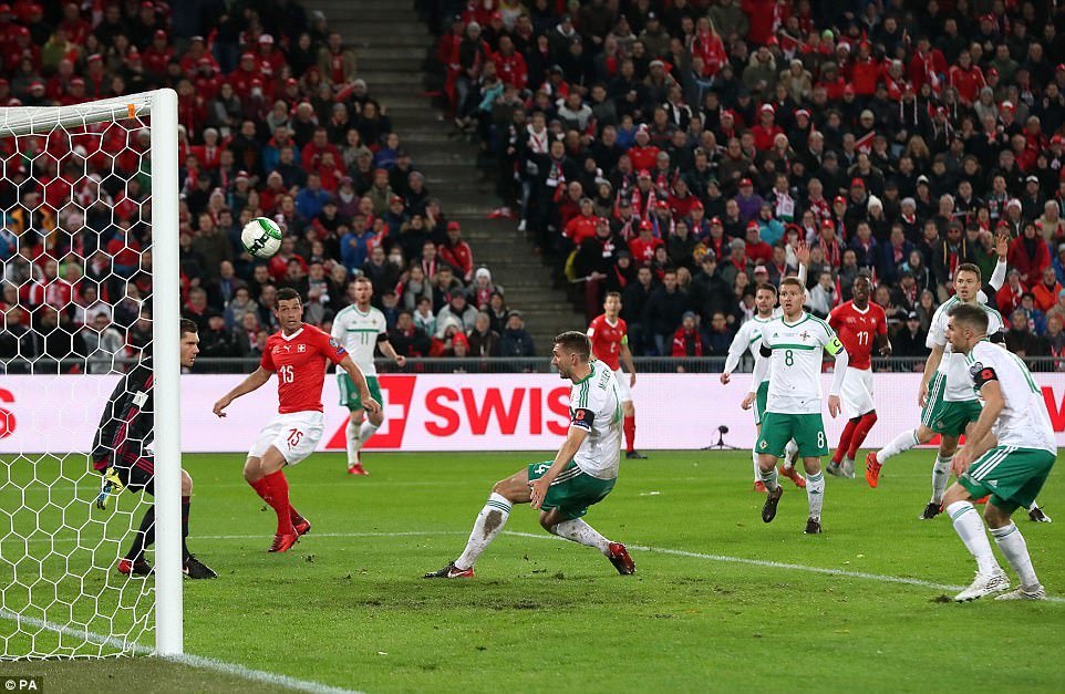 Trận tái đấu giữa Thụy Sỹ và Bắc Ireland diễn ra sôi động và hấp dẫn nhưng khép lại mà không có bàn thắng nào được ghi. Kết quả thắng chung cuộc 1-0 giúp Thụy Sỹ lần thứ 4 giành vé dự World Cup.