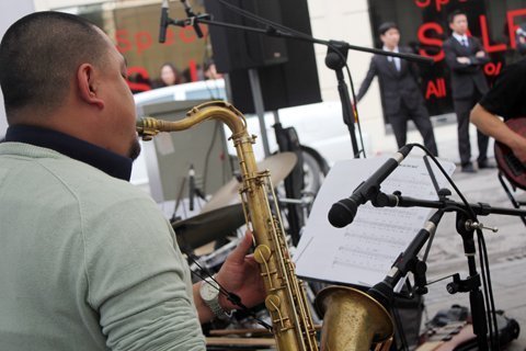 Nghệ sĩ Quyền Thiện Đắc biểu diễn Jazz trên phố Lý Thái Tổ |