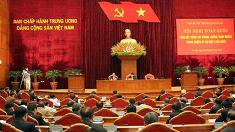 Thường trực Ban Bí thư Trương Tấn Sang phát biểu kết luận hội nghị toàn quốc tổng kết công tác phòng, chống tham nhũng trong nhiệm kỳ Đại hội X của Đảng hôm nay (30/11). Ông nhấn mạnh mục tiêu kiên quyết ngăn chặn, từng bước đẩy lùi tham nhũng, loại bỏ dần các cơ hội và điều kiện phát sinh tham nhũng.