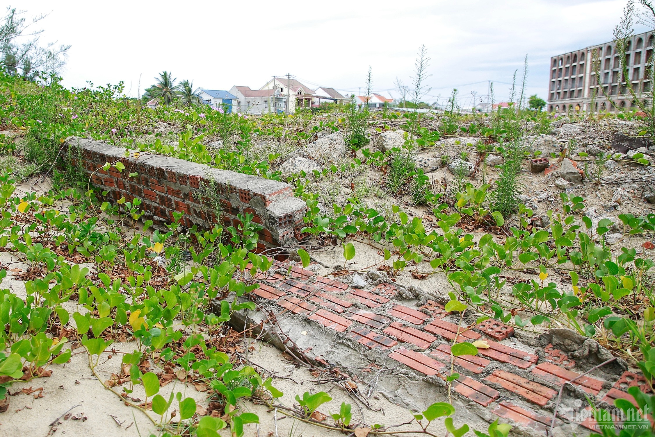 Ghi nhận của VietNamNet vào ngày 31/7, công trình được bao quanh 3 phía bởi hàng rào bê tông và tôn. Phía còn lại giáp biển không được che chắn. Cỏ cây mọc phía ngoài um tùm.