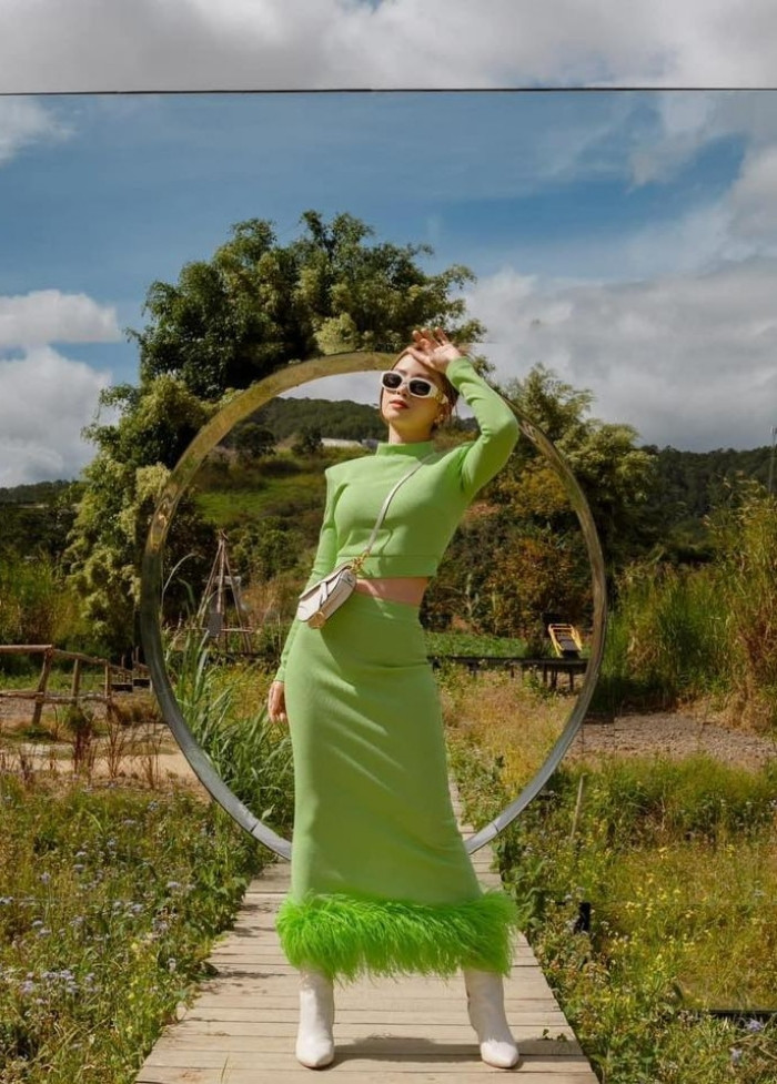 Hoàng Thuỳ Linh tạo dáng thần thái trong trang phục gam xanh lá đậm chất truyền thống. Thiết kế mang hình ảnh hoa sen cách điệu và làm từ vải voan bay bổng. Nữ ca sĩ chọn vòng tay to bản và đôi giày đính kết cầu kỳ làm điểm nhấn.Võ Hoàng Yến gây ấn tượng với váy body màu hồng neon kết hợp áo choàng màu xanh. Thiết kế cúp ngực được đính kết bông hoa hồng lớn, phối cùng chiếc mũ bạc khiến outfit của nàng mẫu càng thêm độc đáo.Đỗ Hà đằm thắm khi diện váy đỏ dáng dài, với phần sườn xẻ hút mắt và điểm nhún eo hình nơ. Nàng hậu phối cùng giày cao gót đồng màu, trang điểm sắc sảo và thêm hoa cài tóc.Tiểu Vy đẹp mong manh trong tà áo dài trắng dáng suông, cổ tròn với các đường cúc cài cổ điển. Người đẹp Quảng Nam trang điểm theo tone tím – đỏ lạ mắt, chọn kiểu tóc búi và cài hoa nhẹ nhàng.Ngọc Châu khoe khéo vóc dáng trong chiếc váy dài ôm sát màu ngọc trai với phần hoa đính nổi được xếp dày đặc làm điểm nhấn. Hai bên sườn váy được xẻ sâu, thêm thắt các mối nối giúp tổng thể thanh thoát hơn.Thuỳ Tiên, Thiên Ân đẹp trong veo với layout gam hồng blush. Hai nàng hậu cùng chọn váy trắng hai dây được cut-out vừa phải giúp tôn da, bên cạnh đó là kiểu tóc xoăn lọn nhỏ phù hợp với trang phục.Á hậu Trà My chọn váy công chúa bồng bềnh cho dịp đầu năm mới. Thiết kế mang hoạ tiết cánh bướm trên nền vải trong suốt, các chi tiết bèo nhún, tay bồng được sắp xếp hài hòa. Người đẹp trang điểm theo tone cam nude và chọn kiểu tóc xoăn nhẹ nữ tính.Đặng Thu Thảo ngọt ngào với váy hoa chiết eo, xòe rộng tone hồng – xanh cùng điểm nhấn là phần cổ bẻ thắt nơ. Nàng hậu kết hợp tinh tế cùng túi xách màu hồng phấn nhã nhặn.Minh Hằng yêu kiều khi diện áo dài cách tân cúp ngực màu vàng kết hợp cùng dải lụa vắt chéo từ eo lên ngang vai ấn tượng. Nữ diễn viên để kiểu tóc búi, mái dài phối cùng bông tai đơn giản.Dương Hoàng Yến cá tính với set đồ màu xanh cốm thời thượng, gồm áo crop-top tôn eo và chân váy bút chì đính đính lông. Nữ ca sĩ lựa chọn kính mắt, túi đeo chéo và boots tone-sur-tone.
