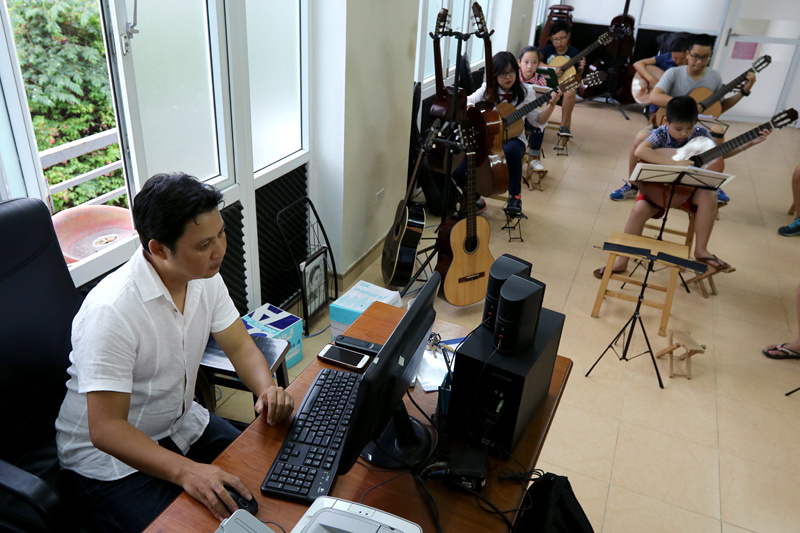 Thầy Phong cho biết, tất cả các học viên muốn mau tiến bộ đều phải chăm chỉ luyện tập ở nhà, Ít nhất 1 giờ mỗi ngày. Nhờ có phần mềm GuitarPro, các học viên có thể ôn luyện dễ dàng ở nhà.