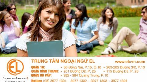 vốn kiến thức về Anh văn tổng quát và thương mại của học viên. Trong thời gian này, các học viên đến đăng ký học tại EL còn được tham gia các chương trình khuyến mãi như: tặng notebook xinh xắn, mỗi ngày một học bổng toàn phần cho các bạn đến thi thử TOEIC và được tặng 5-15% học phí. |