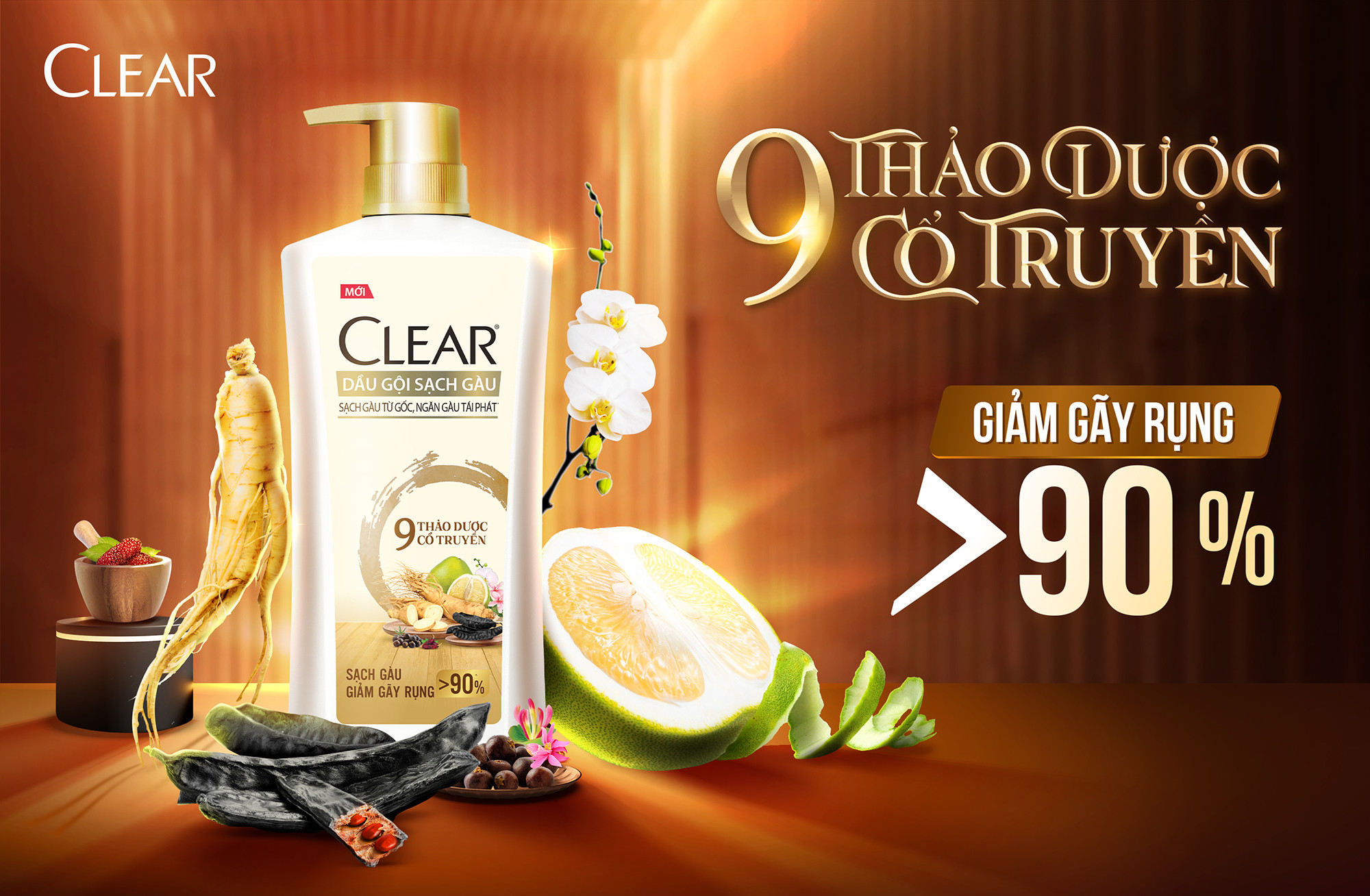 ![]() Thấu hiểu nhu cầu làm đẹp của phụ nữ Việt Nam, cũng như kế thừa kiến thức cổ truyền, Clear đã đúc kết 9 loại thảo dược dành riêng cho tóc như: nhân sâm, bồ kết, vỏ bưởi, dâu tằm, hoa kim ngân, hoa lan, tràm trà, cỏ mực, quả bách xù trong sản phẩm mới - Dầu gội Clear 9 Thảo dược cổ truyền, giúp tóc sạch gàu từ gốc, ngăn gàu tái phát*, đồng thời giảm gãy rụng hơn 90%** *Theo kết quả kiểm nghiệm đối với vảy gàu nhìn thấy được trên tóc và da đầu khi dùng thường xuyên **So với dầu gội không chứa chất xả, trong điều kiện thí nghiệm |