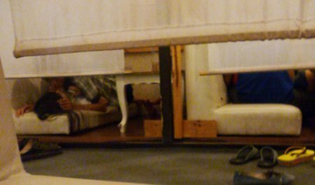 Bên trong những căn buồng có người, đủ loại âm thanh phát ra làm cho câu chuyện của họ lẫn vào nhau. Mấy buồng đầu của các đôi trẻ, chỉ nghe rõ tiếng các cô gái trách yêu bạn trai vì tội dám "sàm sỡ". Có cô hồn nhiên đến nỗi hét toáng lên mỗi khi bị người yêu âu yếm, khiến các đôi ở buồng bên cạnh phải tạm dừng vài phút để "hóng".