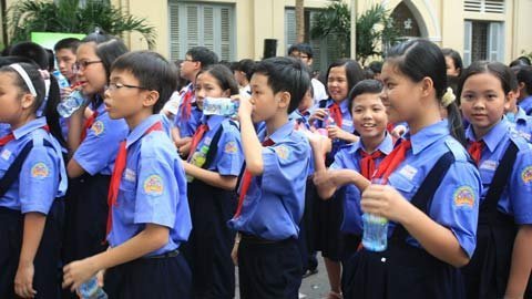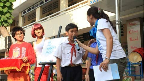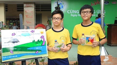 Các em học sinh Trường THCS Hai Bà Trưng hào hứng với Ngày nước Thế giới