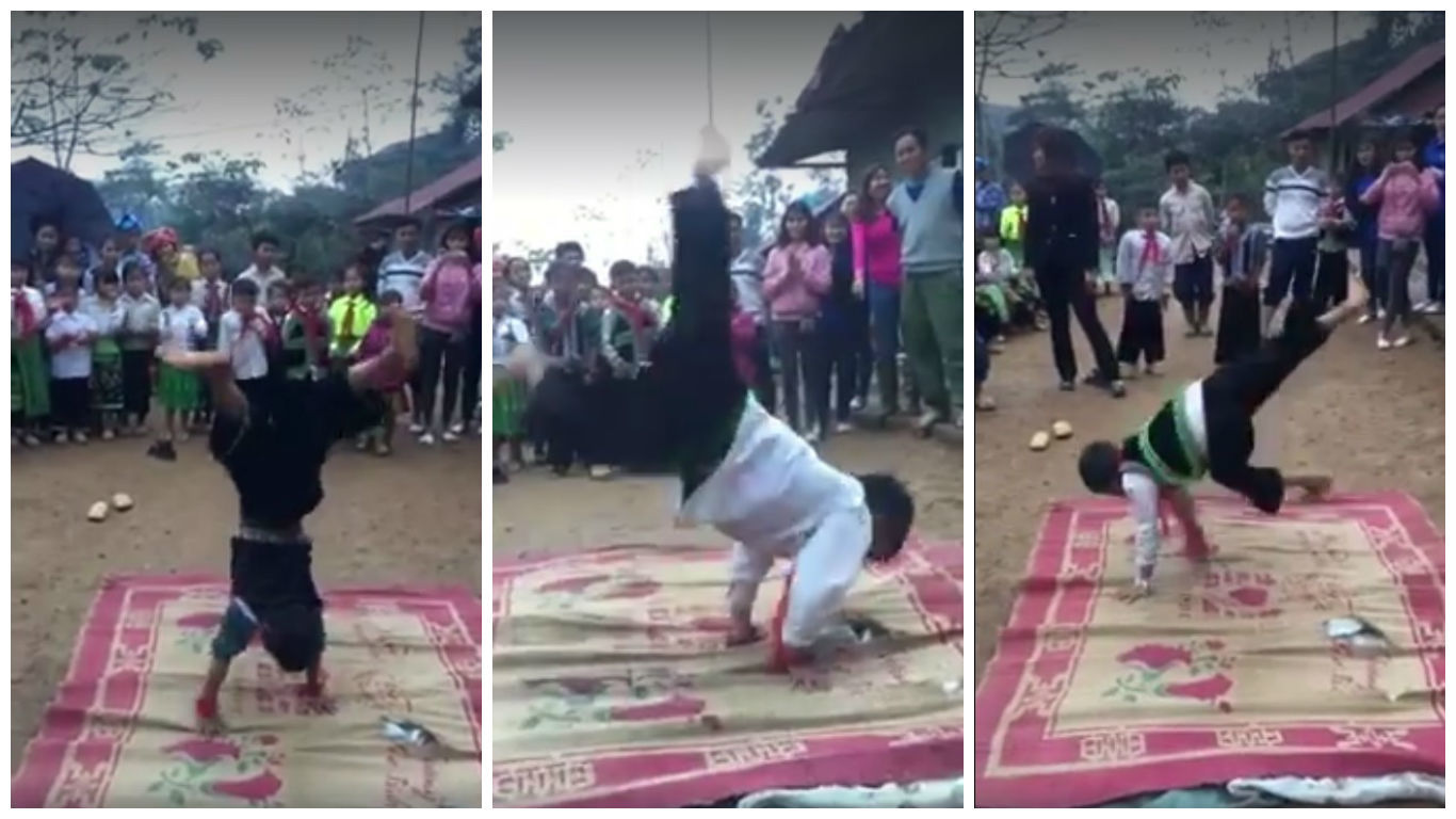 Cụ thể, clip ghi lại cảnh 3 học sinh tiểu học người dân tộc thay nhau thực hiện những động tác hiphop khá khó trong sự tán dương của mọi người.