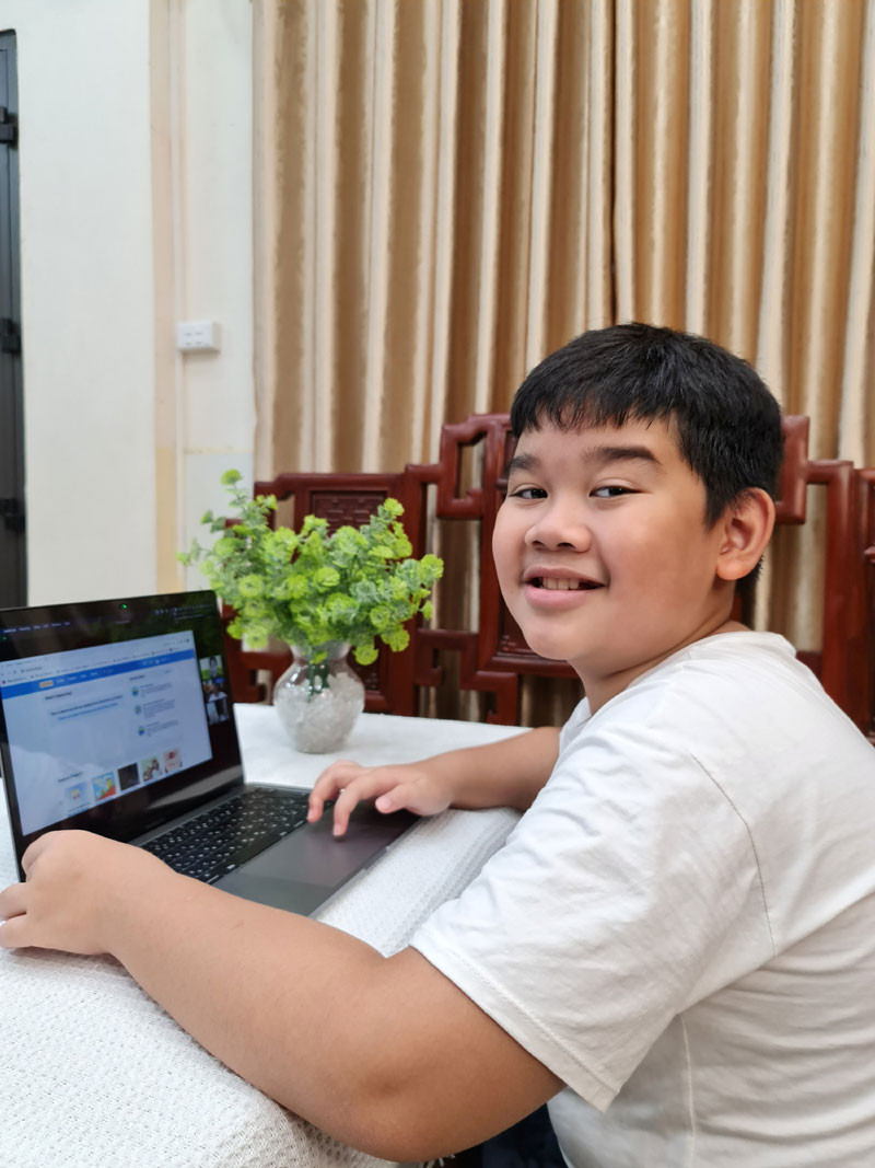 Còn với Nhật Huy, trải qua 2 tháng học lập trình, Huy đã nắm vững các kiến thức cơ bản của ngôn ngữ lập trình Python và nền tảng lập trình CodeCombat (nền tảng học Python của Mỹ với các bài học thú vị về lập trình điều khiển nhân vật trong thế giới ảo). Các thầy cô giáo đồng hành trong khóa học đều đánh giá Nhật Huy là cậu bé luôn chủ động tìm hiểu cũng như học thêm các kiến thức mới, có tư duy lập trình và sáng tạo rất đáng khen.