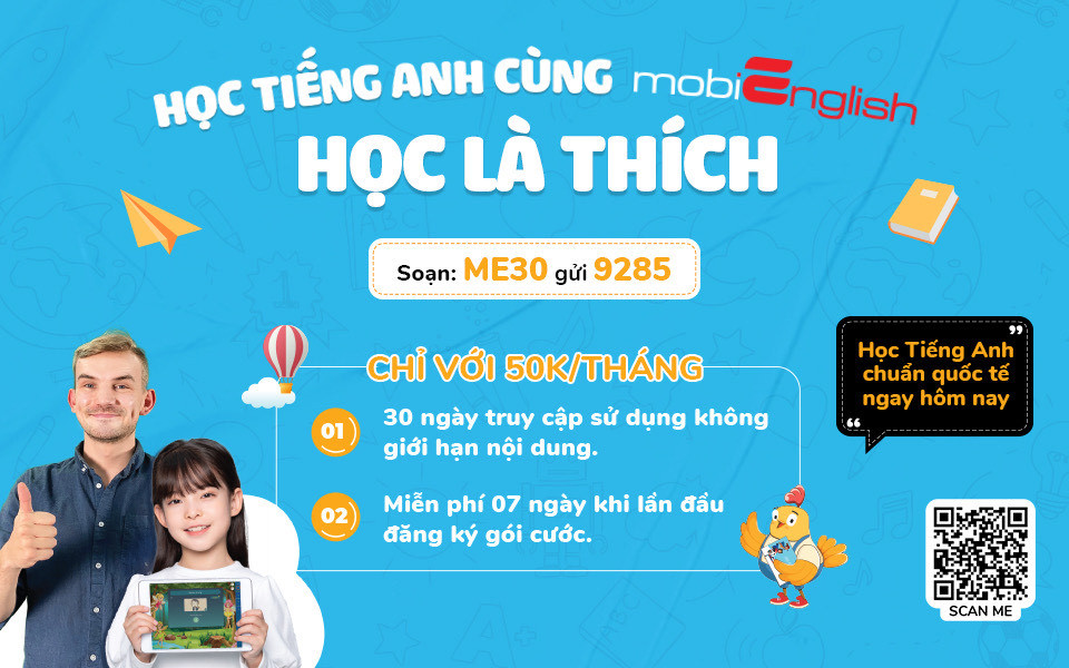 MobiEnglish là nền tảng học tiếng Anh online chất lượng cao theo chuẩn quốc tế được giảng dạy bởi các giáo viên người nước ngoài, giúp các thuê bao học tiếng Anh hiệu quả, tiết kiệm, thông minh. MobiEnglish hướng đến phục vụ đa đối tượng (từ trẻ em mầm non đến học sinh từ lớp 1 đến lớp 12), với đa nền tảng học tập.