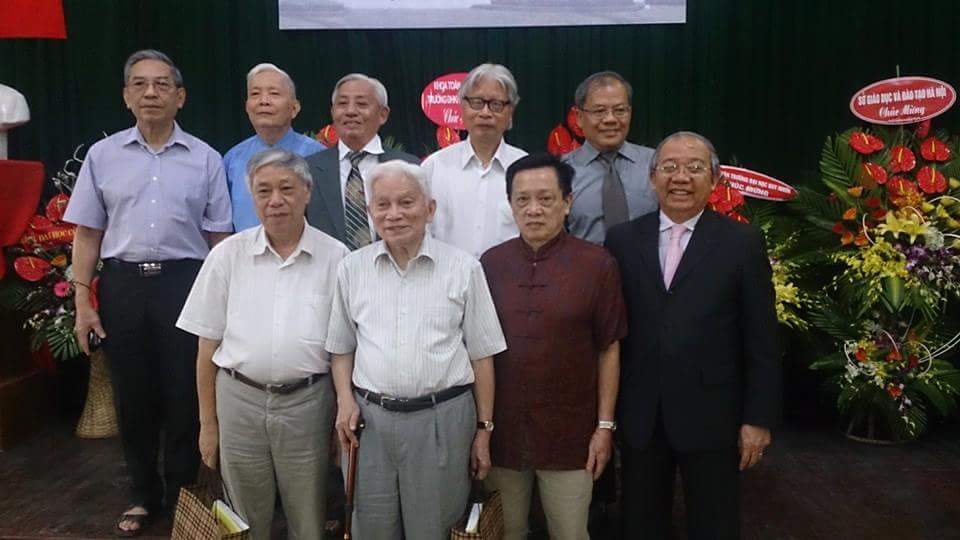 GS Hoàng Tụy (sắp tròn 90 tuổi) và các học trò toán học của mình. GS Trần Văn Nhung (hàng đầu, ngoài cùng bên phải) cũng là một trong những học trò của GS Hoàng Tụy