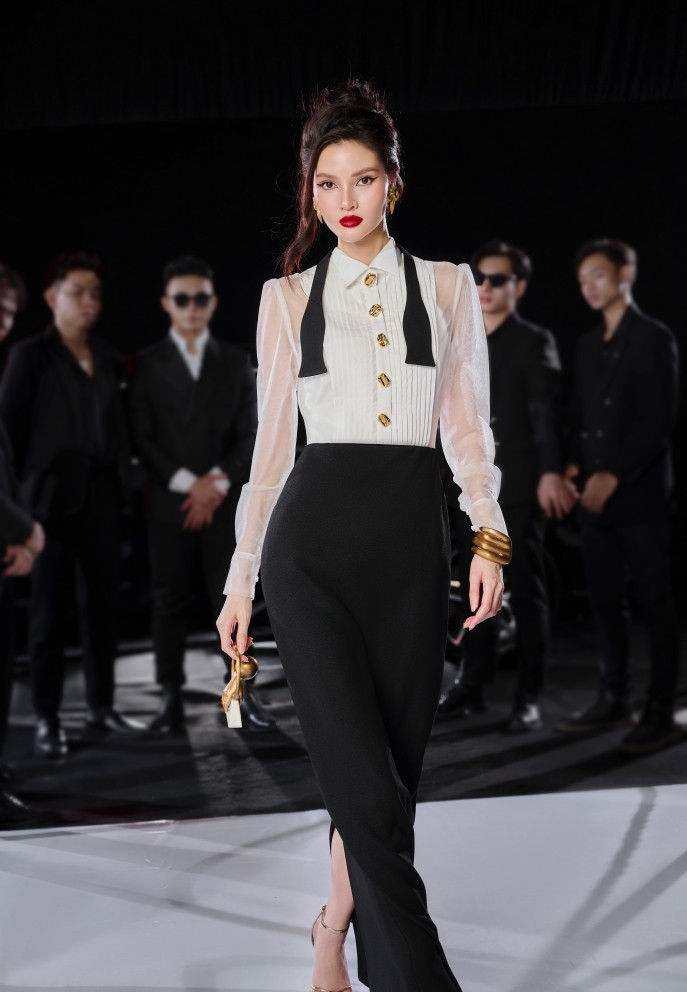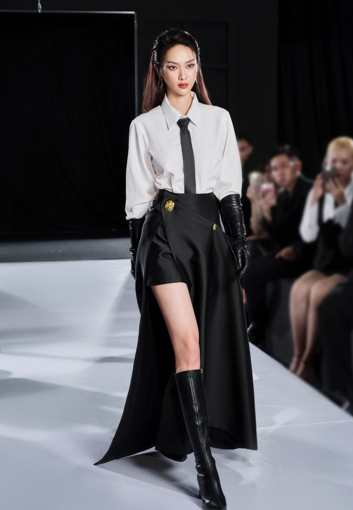 Xuất hiện trước ống kính và trên sàn runway, 3 người đẹp Ngọc Ánh, Hương Giang, Thuý Quỳnh diện những trang phục tông màu trắng - đen kinh điển. Từ thần thái, cách trang điểm, làm tóc đến những sải bước của họ đều toát lên vẻ đẹp nữ quyền thu hút.