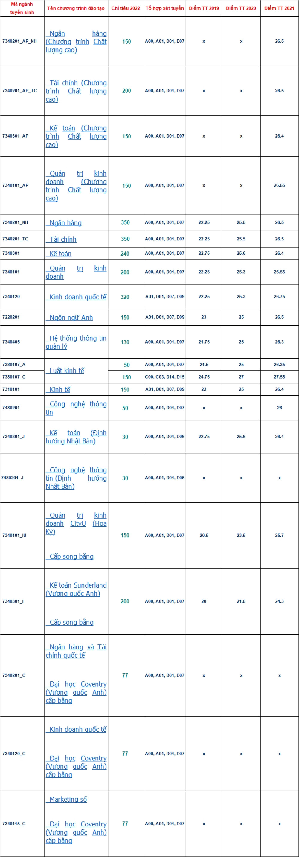 Chi tiết chỉ tiêu vào các ngành của Học viện Ngân hàng như sau: