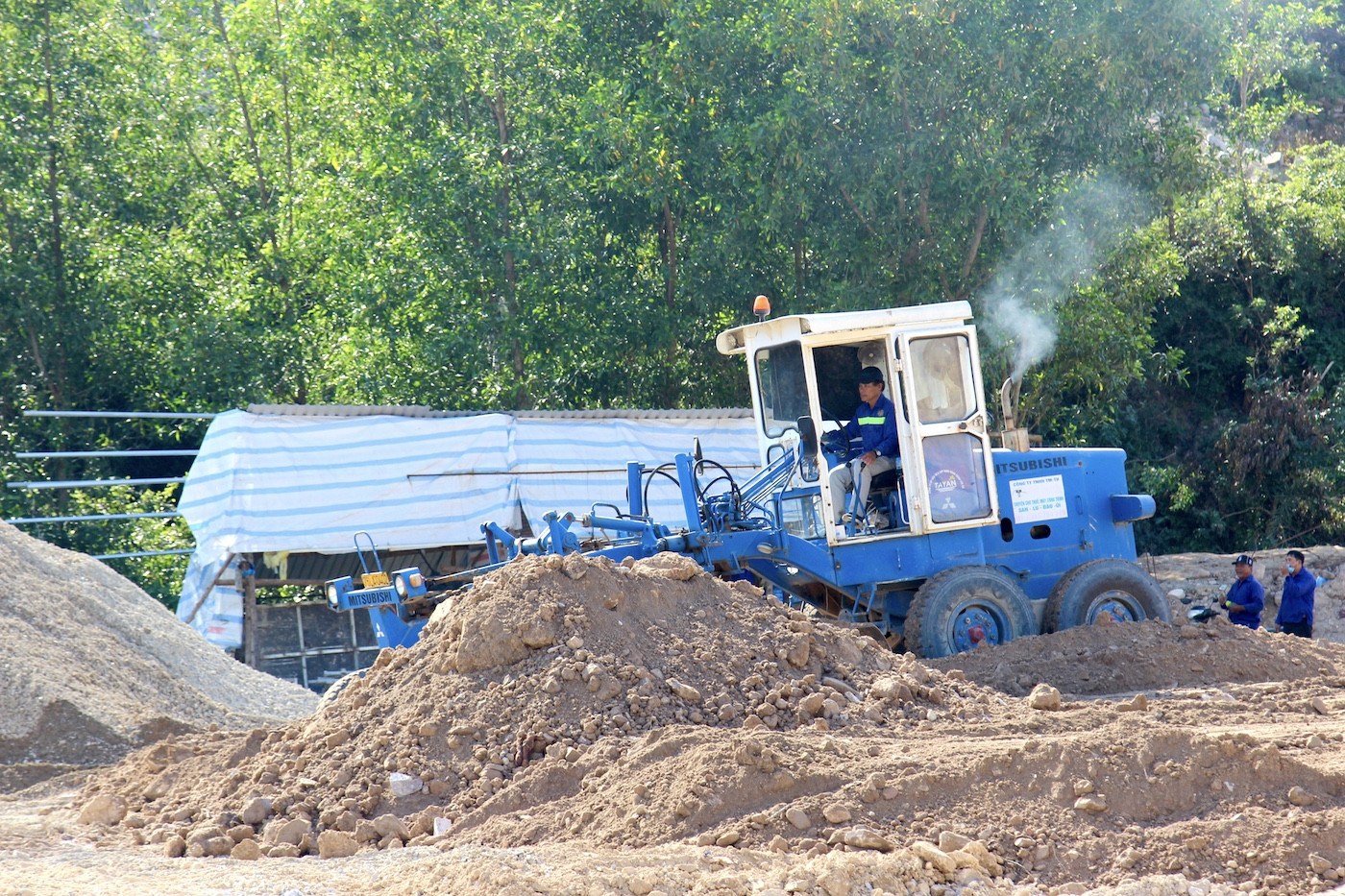 Những ngày cận Tết Nguyên đán Giáp Thìn 2024, tranh thủ thời tiết nắng ráo, hàng chục công nhân tập trung tại công trường thi công hạng mục hầm Sơn Triệu khoan đá nổ mìn thi công hầm để đảm bảo tiến độ.