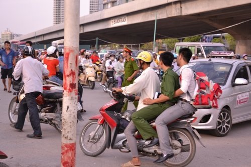 Ùn tắc, lộn xộn khiến lực lượng công an rất vất vả |