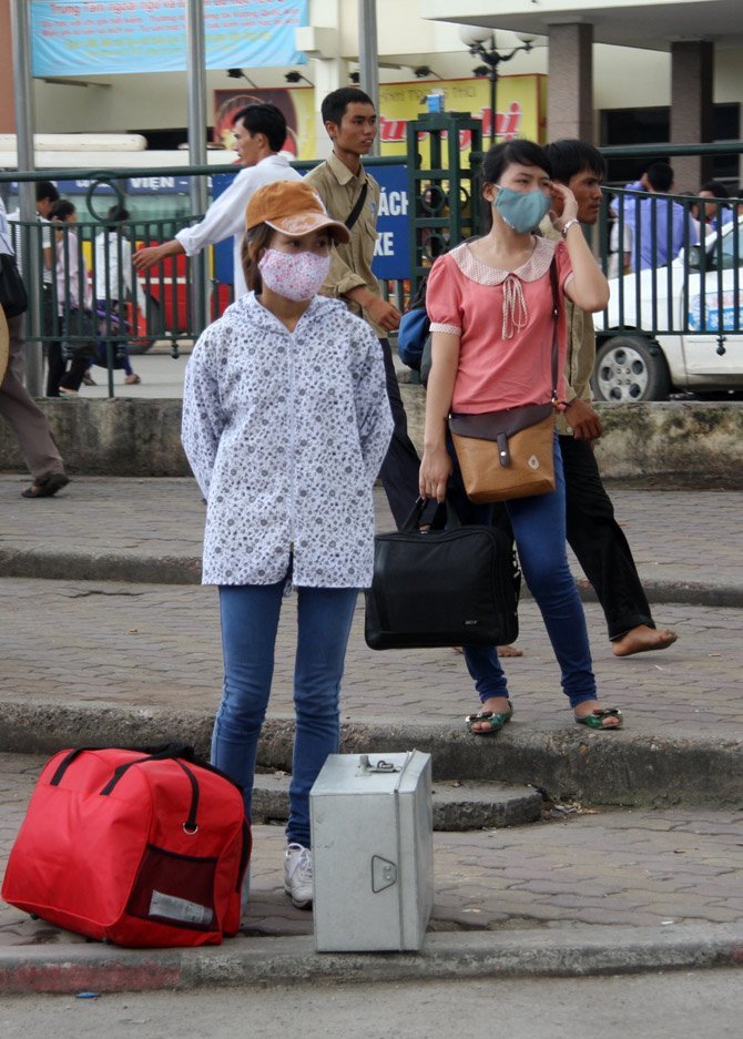Trên đường Nguyễn Văn Cừ (Long Biên-Hà Nội), sinh viên và lao động ngoại tỉnh xếp kín dọc đường đợi bắt xe khách…