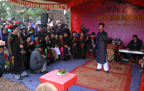 Mọi năm hát loa thì ầm ĩ hỗn tạp kinh người. Năm nay, không dùng loa tăng âm thì du khách lại kêu là không thưởng thức nổi. Các liền anh liền chị mệt lả, hết cả hơi vì phải gắng sức hát to.