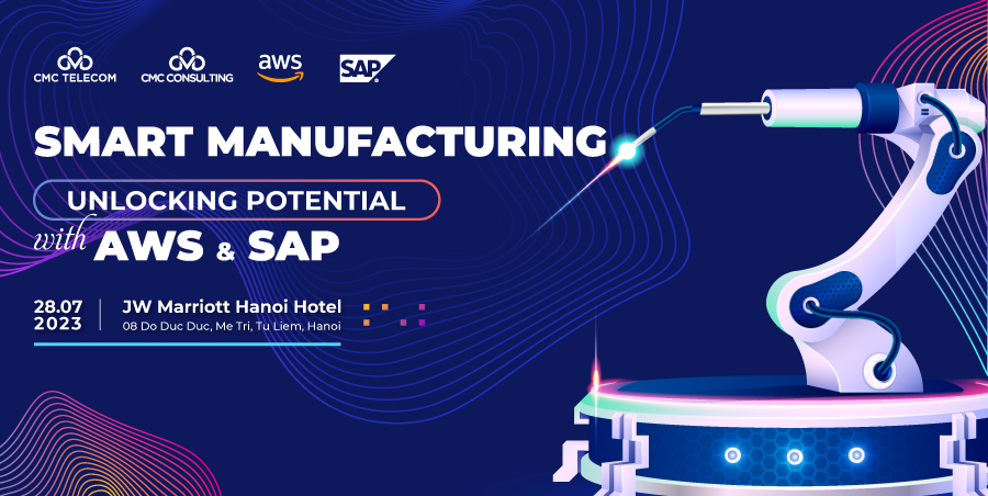 Hội thảo "Smart Manufacturing - Mở khóa tiềm năng với AWS & SAP" nhằm kết nối các bên liên quan và chuyên gia trong lĩnh vực sản xuất, với sự góp mặt của các diễn giả là những chuyên gia và lãnh đạo từ CMC, AWS và SAP. Các diễn giả sẽ cùng doanh nghiệp chia sẻ những góc nhìn về thị trường Việt Nam và thế giới, chia sẻ những câu chuyện thành công về chuyển đổi số; và chứng minh chuyển đổi số có thể thúc đẩy sự đổi mới, tối ưu hóa quy trình sản xuất và mở ra tiềm năng mới trong ngành sản xuất.