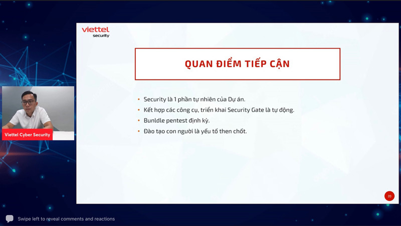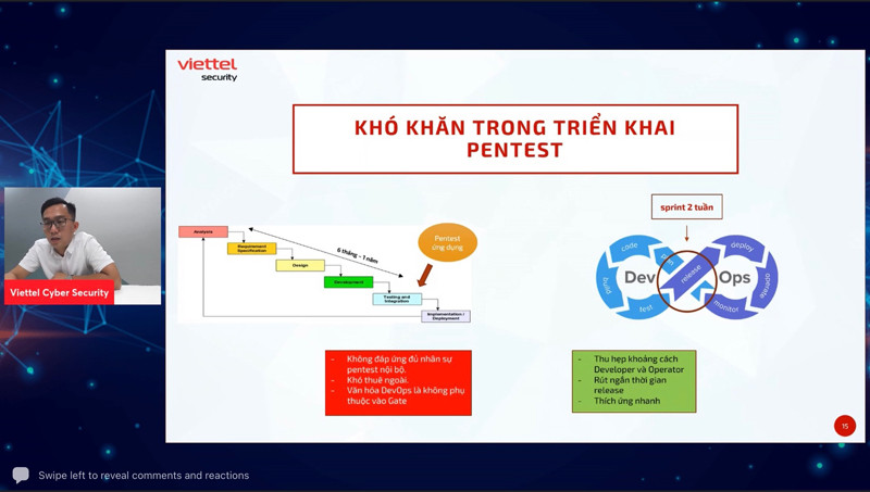 Tại Hội thảo, ông Mai Xuân Cường, Giám đốc An ninh Hệ thống ứng dụng - VCS đã có bài chia sẻ về Hệ sinh thái Pentest của VCS. Đây là hình thức kiểm tra đánh giá An toàn thông tin cho hệ thống của khách hàng có thể vấn đề, nguy cơ về ATTT hay không, bằng cách đóng vai tin tặc và giả lập các vụ tấn công thử nghiệm vào hệ thống của khách hàng.
