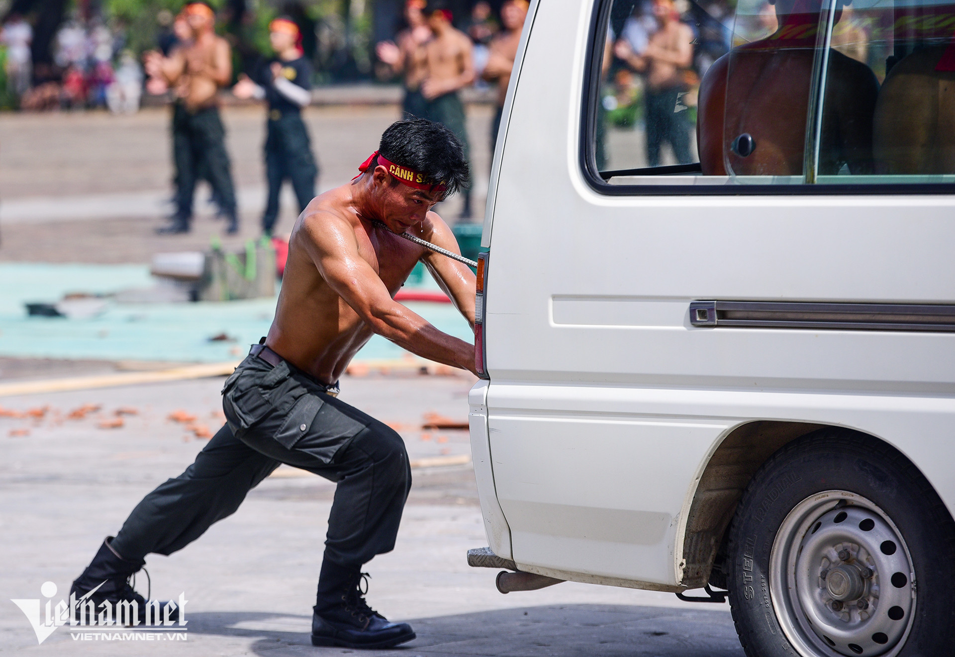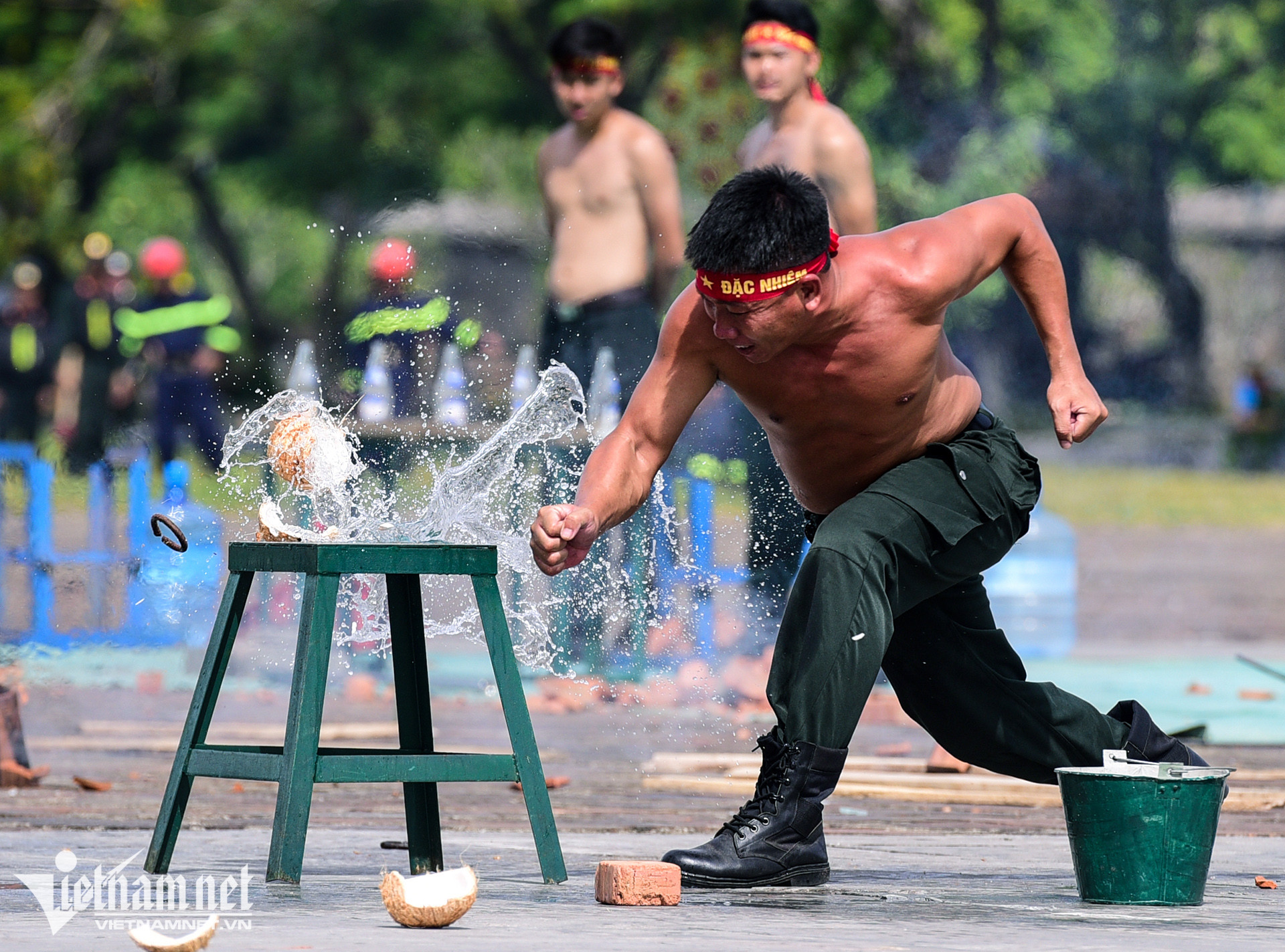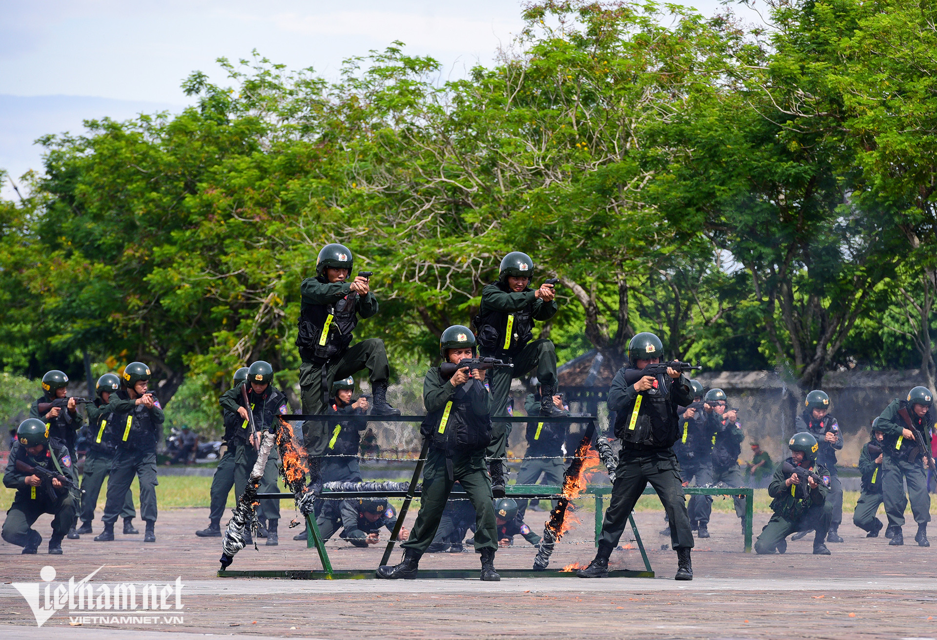 Dùng mắt bẻ cong thanh sắt, mình trần nhảy qua vòng lửa là những hình ảnh ấn tượng tại hội thi điều lệnh, bắn súng, võ thuật công an nhân dân khu vực phía Nam, diễn ra sáng 4/7 ở Thừa Thiên-Huế.