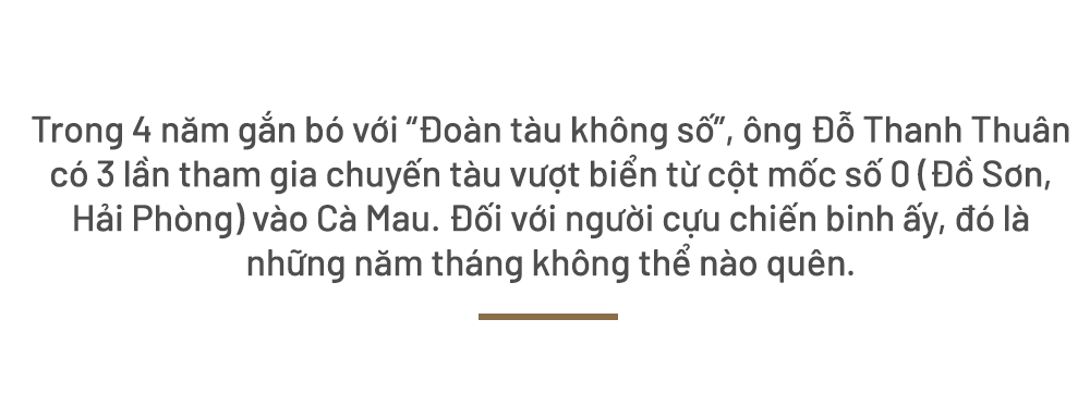 “Sau đó, tôi được tuyển chọn tham gia “Đoàn tàu không số”. Tự hào lắm vì tàu thường có 18 đến 20 thủy thủ, tất cả đều là đảng viên. Trong đó có 3 cán bộ còn lại đều là những chiến sĩ trẻ. Một nửa trong đoàn là người miền Bắc, số còn lại từ các tỉnh miền Nam”, ông Thuân hào hứng kể lại.
