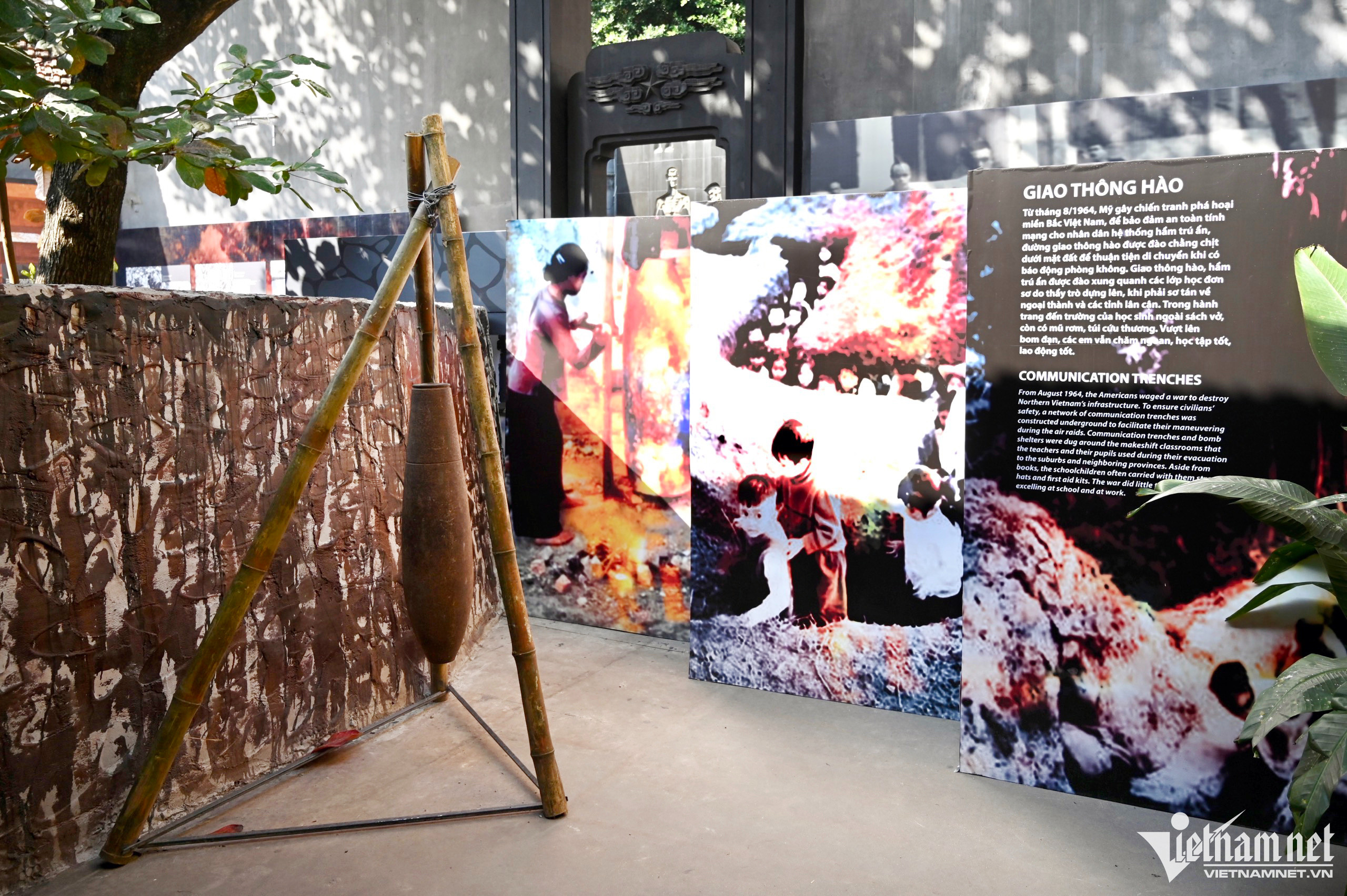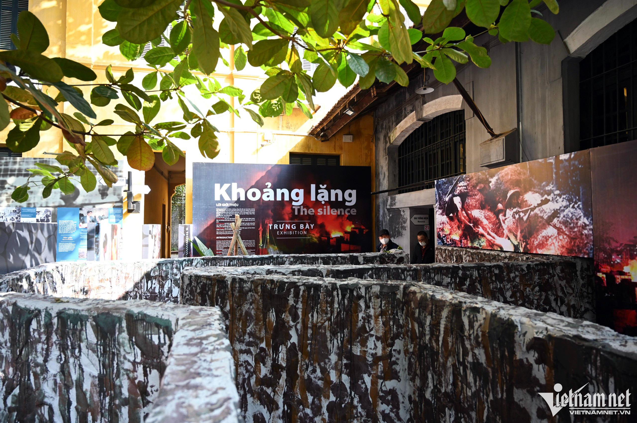 Đó là một trong những hình ảnh tại cuộc trưng bày có tên “Khoảng lặng”. Đây là chương trình tổ chức nhân kỷ niệm 50 năm Chiến thắng "Hà Nội - Điện Biên Phủ trên không” (12/1972 - 12/2022); 50 năm trao trả phi công Mỹ bị giam tại các trại giam miền Bắc (1973 - 2023) dưới sự chỉ đạo của Sở Văn hóa và Thể thao thành phố Hà Nội. Trong ảnh là mô hình tái hiện hệ thống đường giao thông hào năm xưa. Đến đây, du khách được tham gia trải nghiệm chui hào giao thông khi có báo động phòng không.