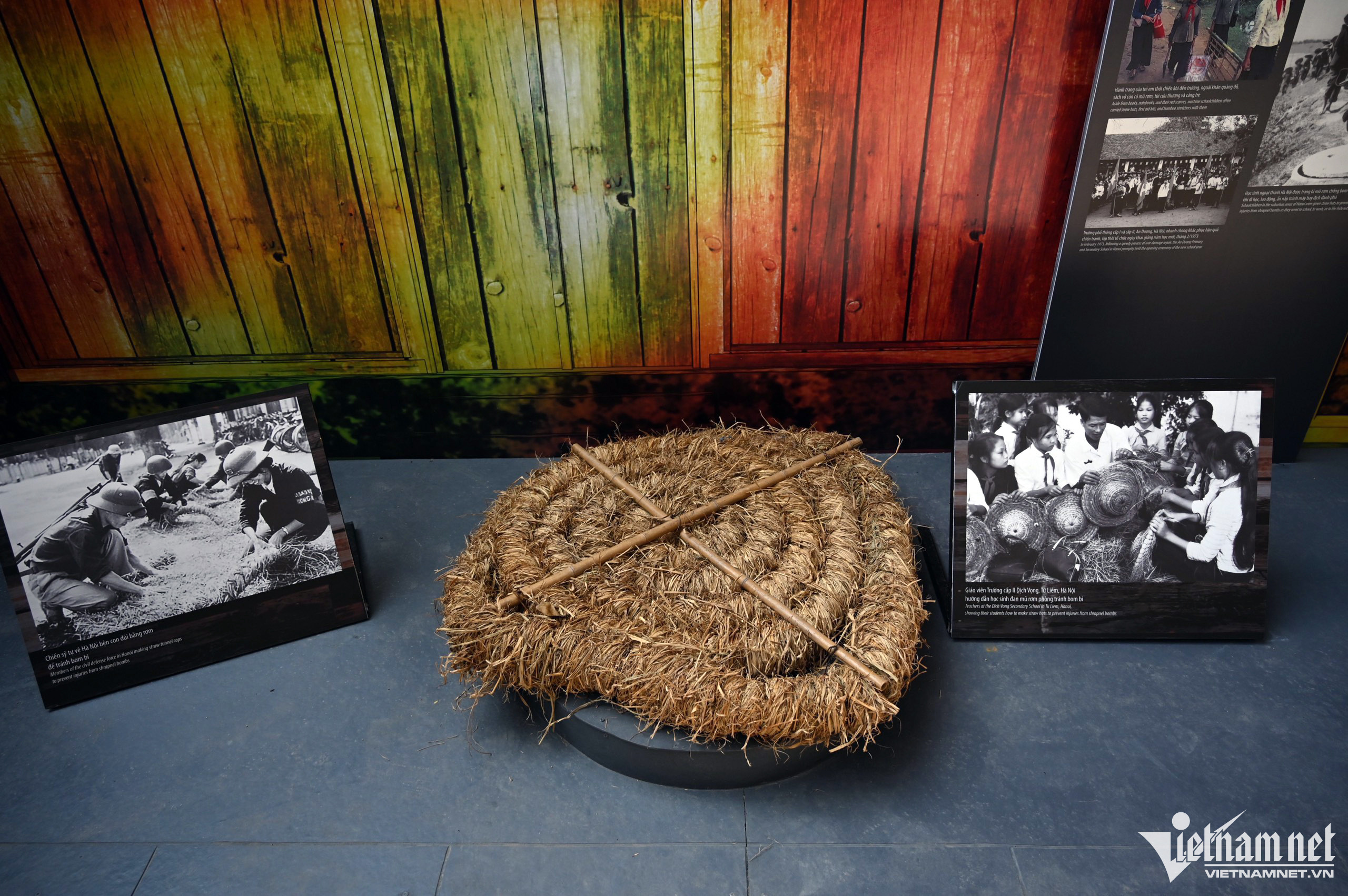 Các vật dụng như mũ bện rơm, loa phát thanh, còi báo động, thiết bị khám bệnh, trị thương... đều được trưng bày tại đây.