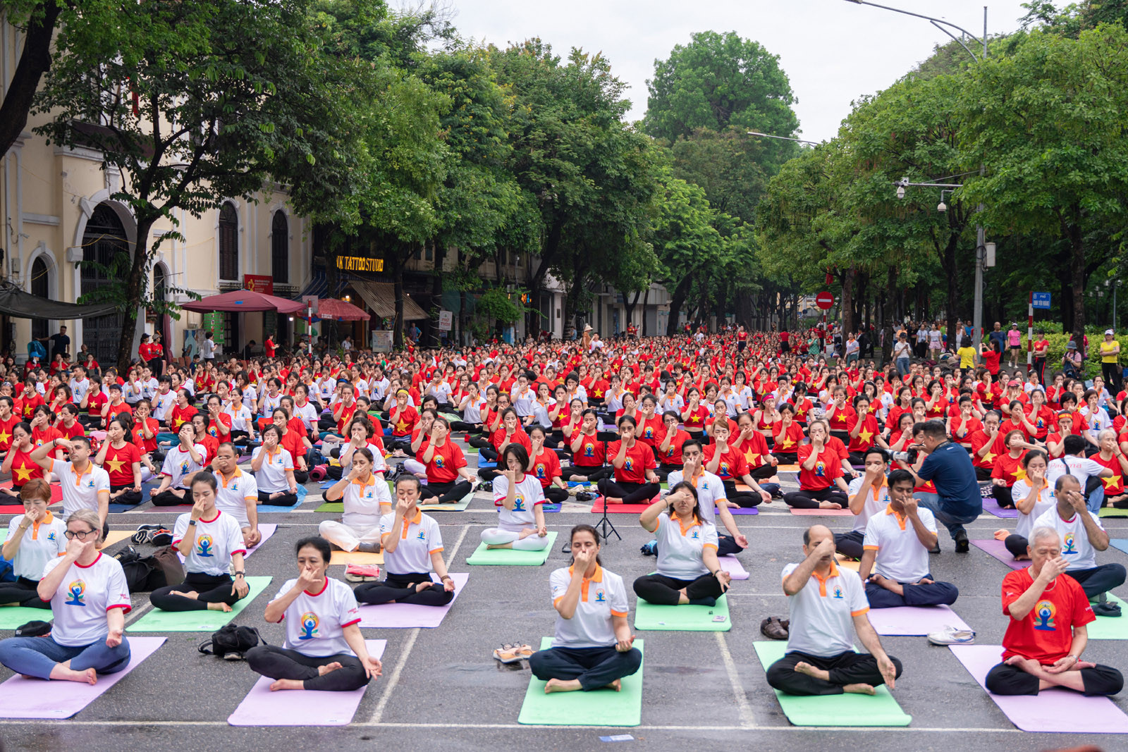 Festival có nghi lễ đốt lửa yoga thiêng liêng, những màn đồng diễn đẹp mắt, những khoảnh khắc sống động bên hồ Gươm hòa lẫn màu cây, màu nước, màu trời xanh biếc.