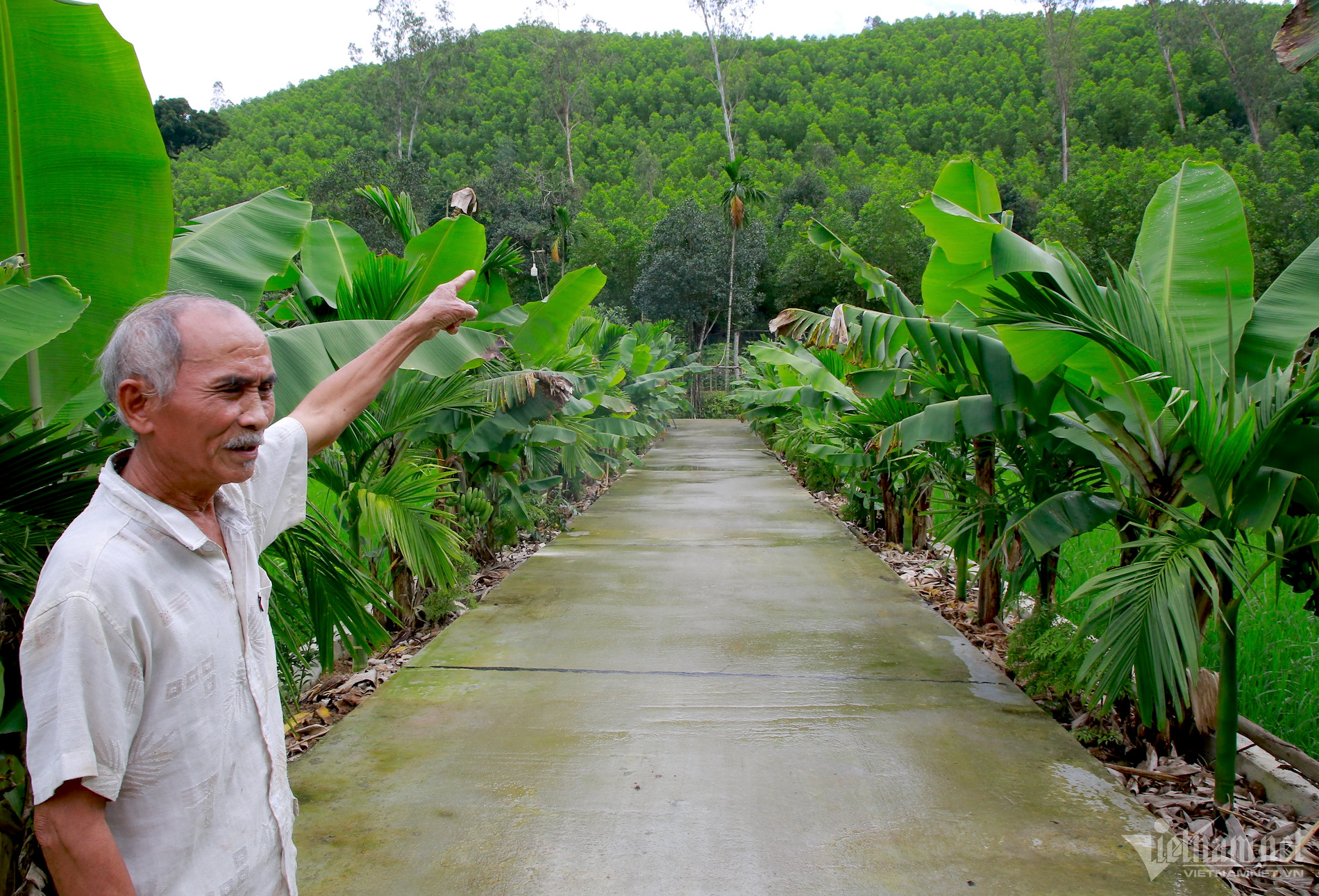 Ông Nguyễn Hạo (SN 1950, ở tổ 11, thôn Trung Hạ, xã Quế Hiệp) cho biết, sau khi được chính quyền hỗ trợ con đường vào tận nhà, ông đã trồng thêm cau, chuối hai bên đường.