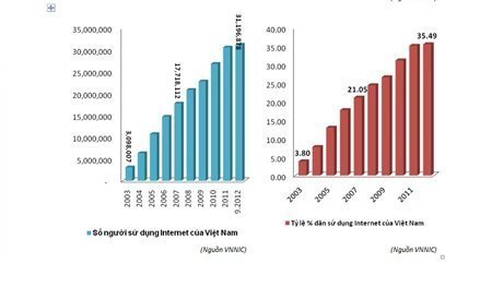 tỷ lệ hộ gia đình có truy cập Internet 35 - 40%; tỷ lệ người sử dụng Internet 55