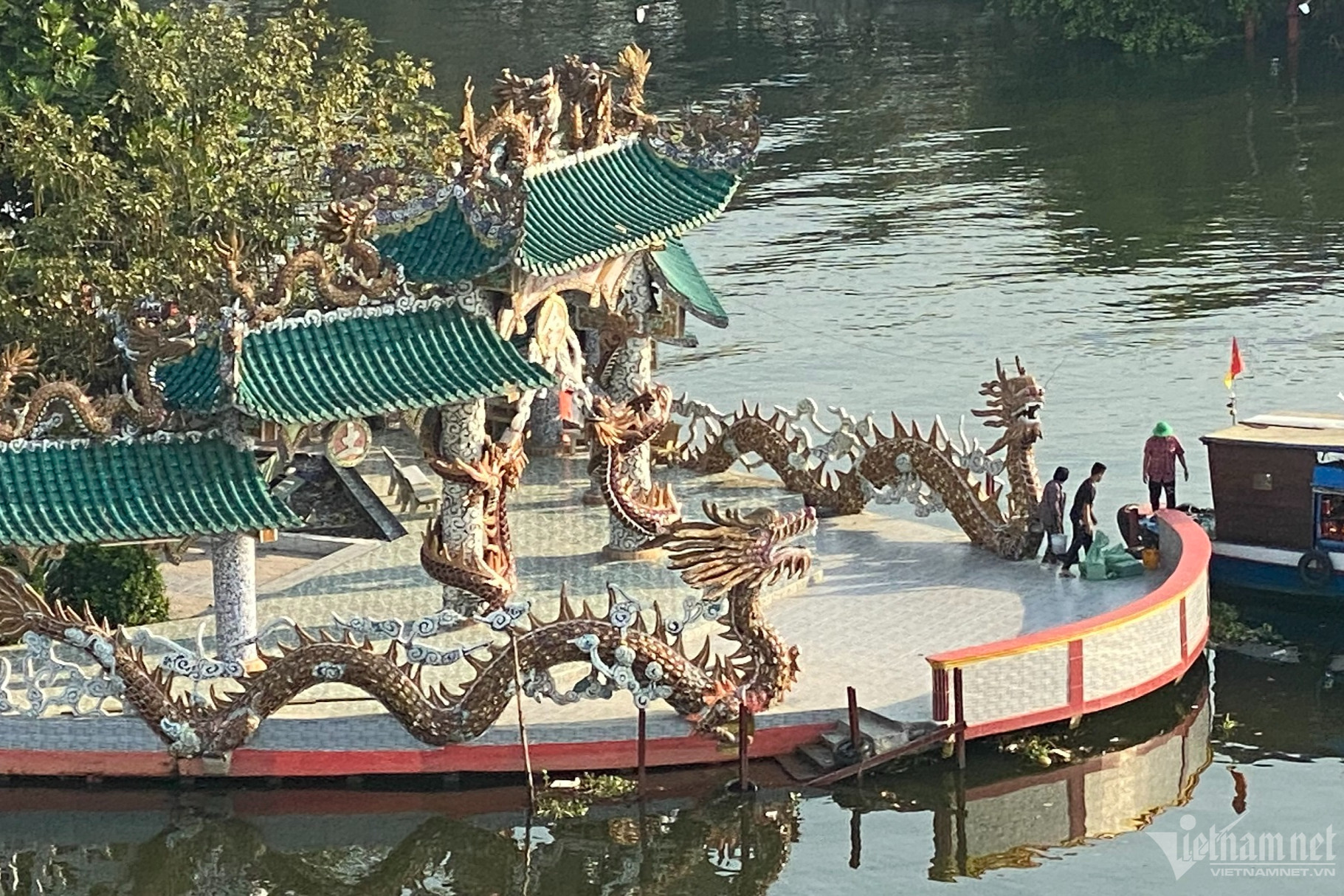 Hơn 100 con rồng lớn nhỏ được trang trí tinh xảo, uốn lượn bên trong ngôi miếu thiêng giữa sông ở TP.HCM thu hút rất đông người dân đến tham quan, chiêm bái.